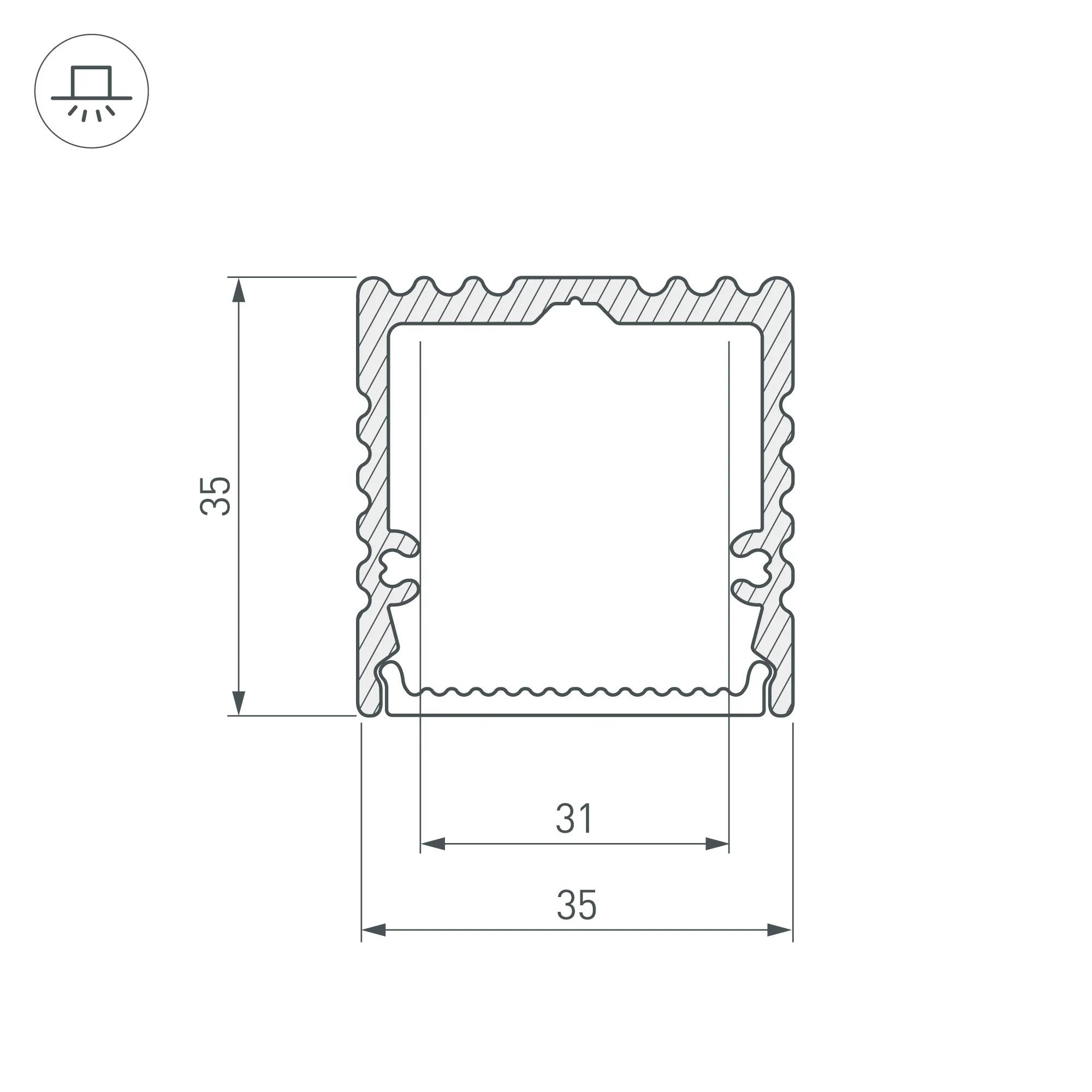 Поставка под заказ от 1 компл. Комплект с экраном. Алюминиевый анодированный профиль для светодиодных лент и линеек. Габаритные размеры (L×W×H): 2000x35x35 мм. Ширина площадки для ленты 31 мм. Аксессуары приобретаются отдельно. Цена за комплект.