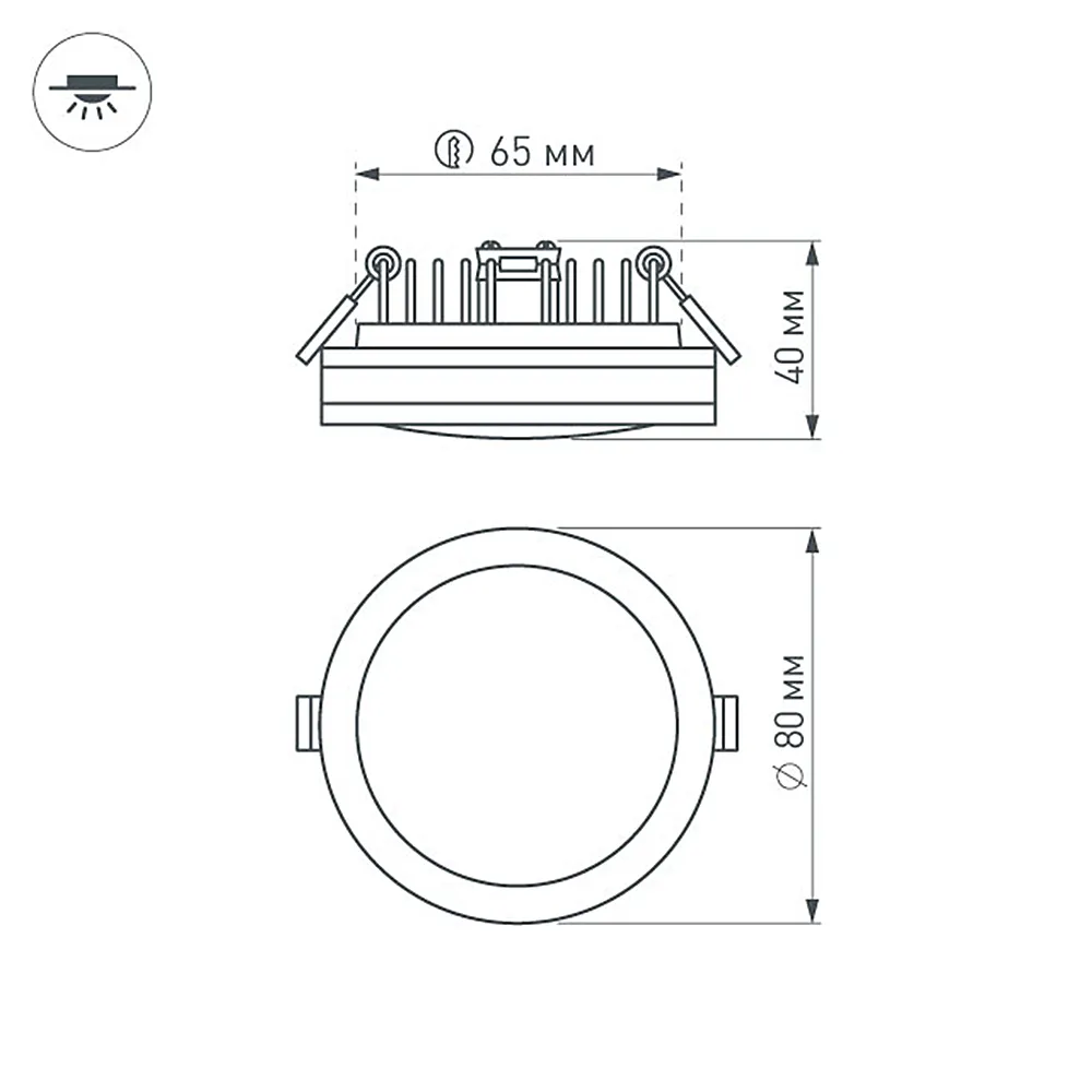Круглый светильник с контурным свечением. Корпус IP44 белый + вставка поликарбонат PC. Цвет БЕЛЫЙ ДНЕВНОЙ 4000К, св.поток 400 лм, угол 120°+180°. Питание 180-240VAC (драйвер в к-те 300mA 11-25V), мощность 5Вт. Размеры 80х40 мм, установка в отв.65 мм, высота мин.40 мм.