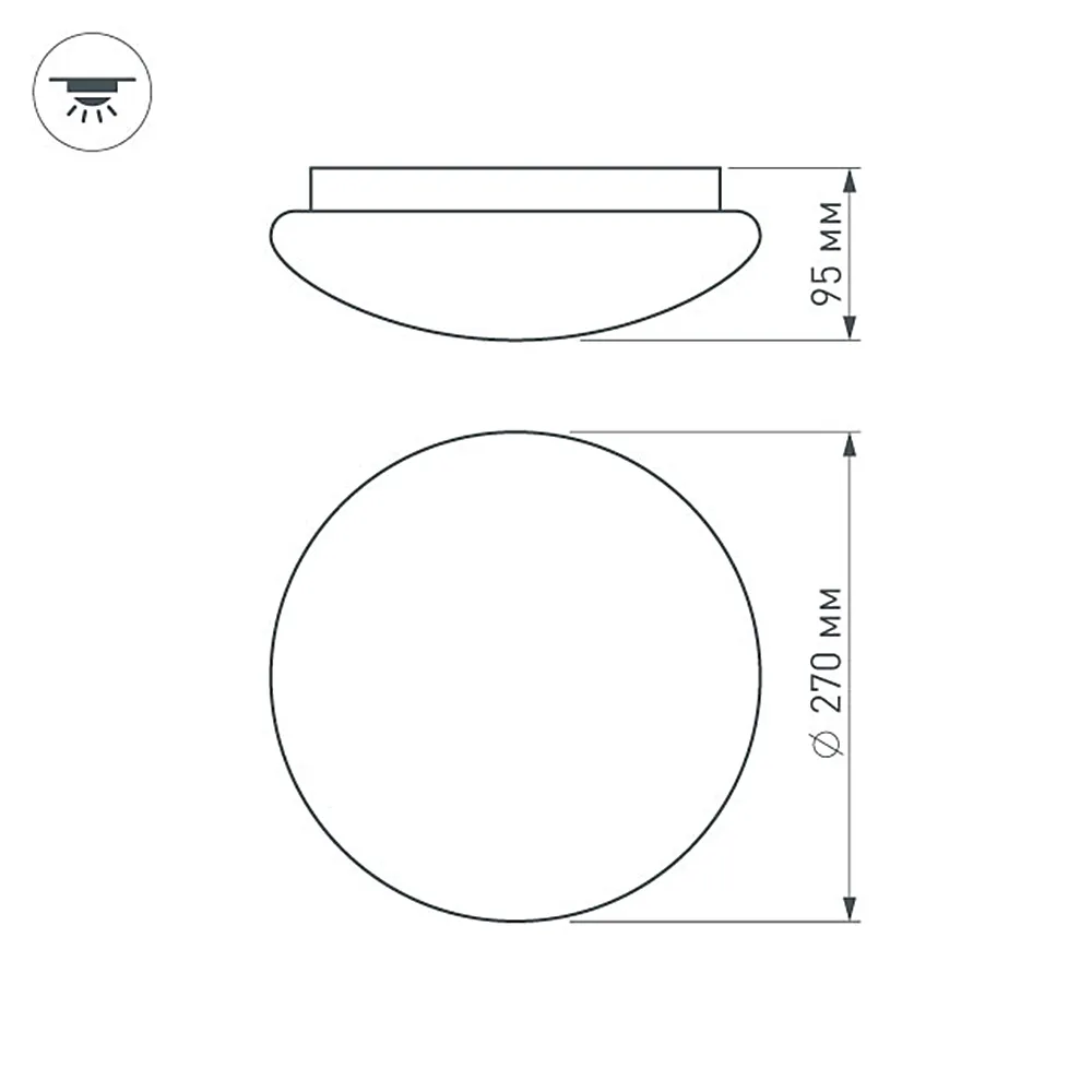 Накладной светильник 13Вт / ТЕПЛЫЙ 3000K / 870лм / 120°. Размер Ф270 x 95мм. Пластиковый объёмный молочный рассеиватель. Питание от сети 220VAC. Энергосберегающее освещение для квартир, подъездов, домов.