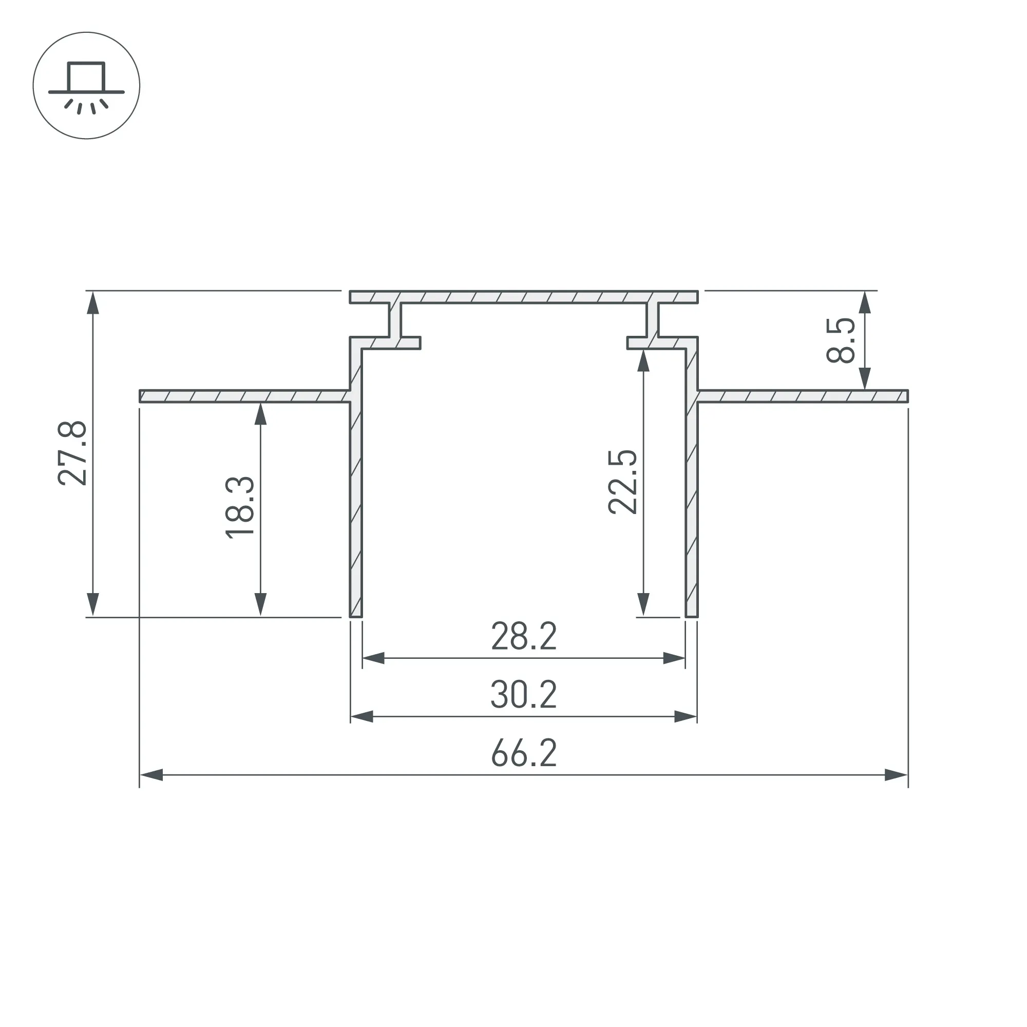 Под заказ от 10 м. Алюминиевый профиль-держатель для встраивания в гипсокартон толщиной 16 мм. В TEK-PLS-ZM можно установить любой профиль PLS при помощи клипс TEK-PLS-CLIP. Рекомендуется профиль PLS-LOCK-H25-FS (016446) для создания полосы света в один уровень с потолком.Габаритные размеры (L×W×H): 2000x66x28 мм. Заглушки и другие аксессуары приобретаются отдельно. Цена за 1 метр.
