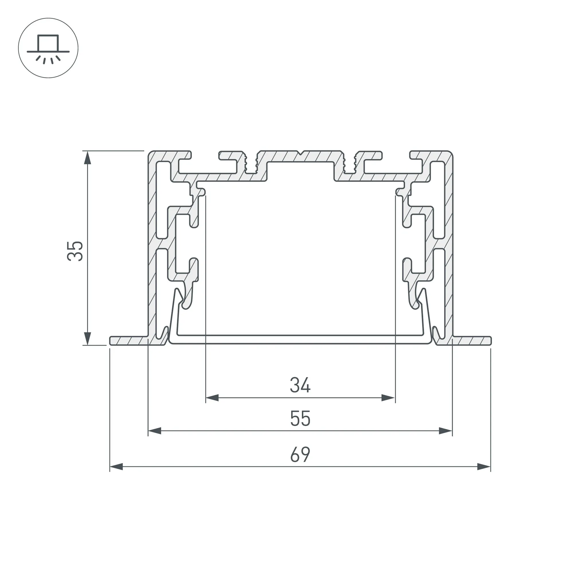 Профиль с экраном S2-LINIA69-F-2500 ANOD+OPAL (Arlight, Алюминий)
