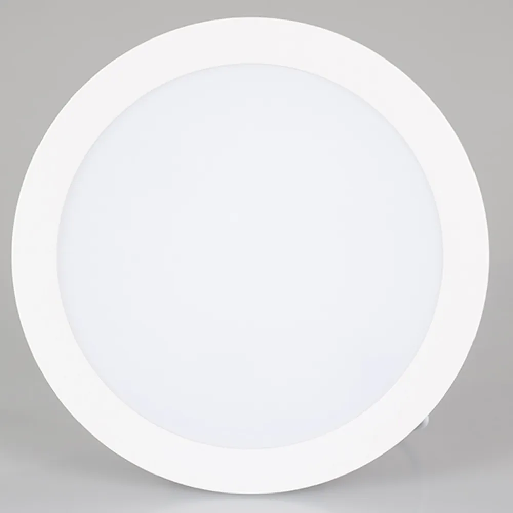 Светодиодная панель 18Вт, корпус белый IP40, круглый. Цвет ТЕПЛЫЙ БЕЛЫЙ 3000K, св.поток 1440-1620лм, CRI(Ra)>80, угол 100°. Размер Ф180x24 мм, установка в отверстие 165 мм. Питание AC 180-240V, 18Вт, DC500mA 32...40V, драйвер в комплекте, пульсация <2%.
