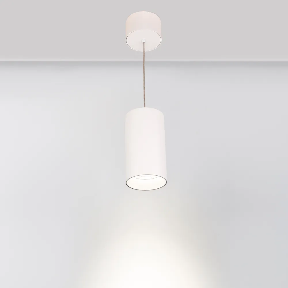 Подвесной светильник 15Вт, белый круглый корпус, белая вставка, металл. Цвет ДНЕВНОЙ БЕЛЫЙ 4000K, св.поток 1100лм, CRI(Ra)>80, угол 40°. Размер Ø85x155мм. Встроенный драйвер PRI:220-240VAC, SEC:DC 350mA 30-43V 15Вт, размер драйвера Ø65 mm, h 26 mm