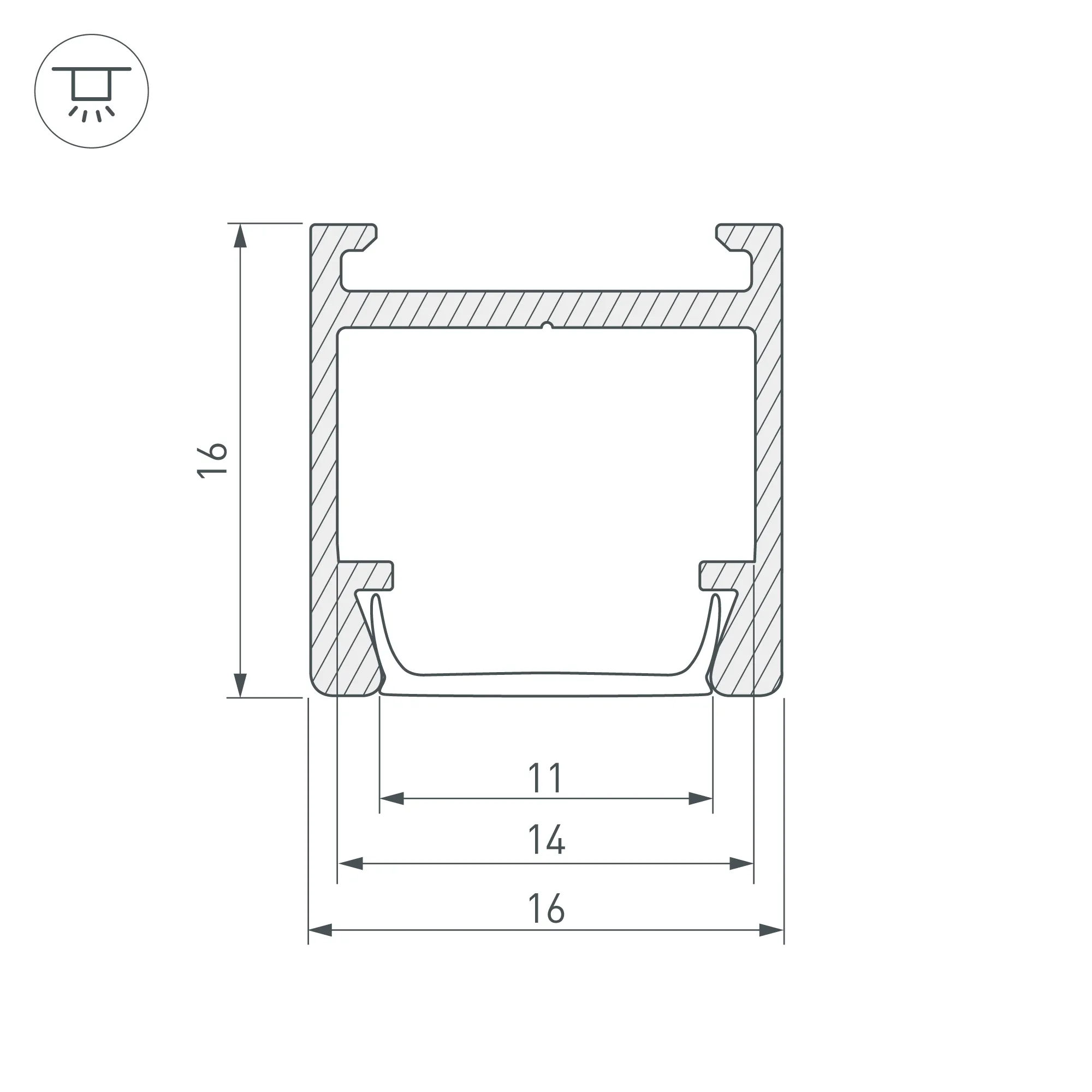 Алюминиевый анодированный профиль для светодиодных лент и линеек. Со скрытым монтажом на скобы (в верхней части профиля имеется отсек, позволяющий скрыть крепеж). Габаритные размеры (L×W×H): 2000x16x16 мм. Ширина площадки для ленты 14 мм. Экраны, заглушки и другие аксессуары приобретаются отдельно. Цена за 1 метр.
