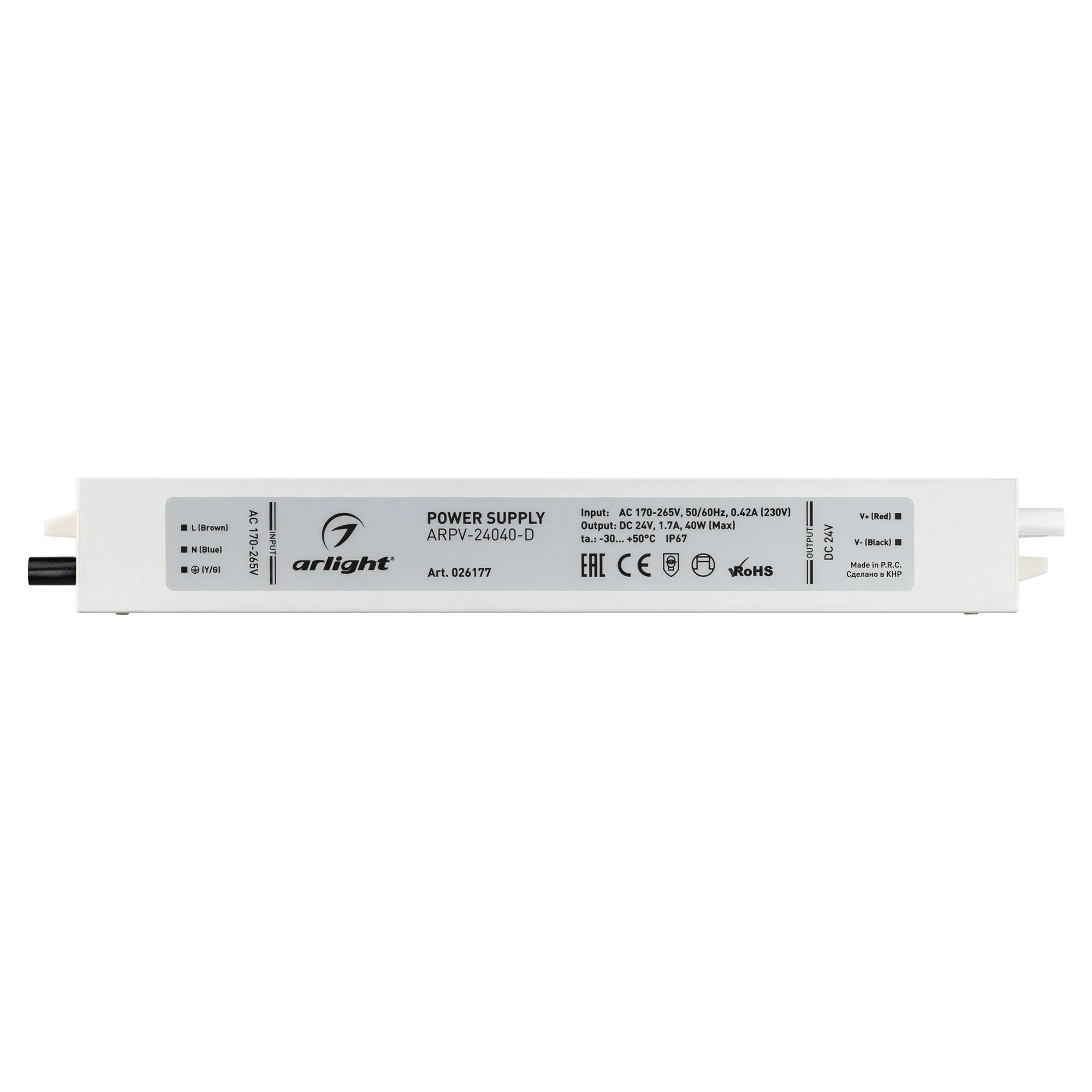 В магазине Arled Market Вы можете купить "Блок питания ARPV-24040-D (24V, 1.7A, 40W) (Arlight, IP67 Металл, 3 года)"