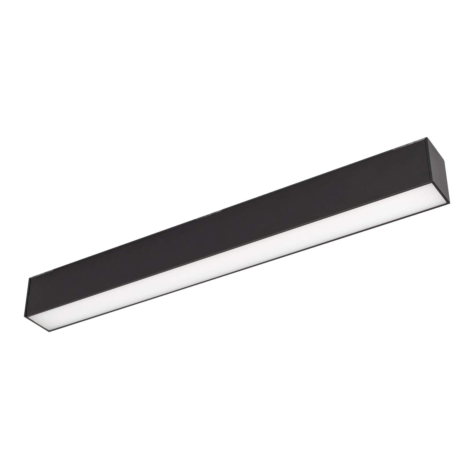 Светильник для магнитных треков шириной 45мм, 12Вт. Цвет свечения ДНЕВНОЙ 4000K, световой поток 1300лм, угол 100°, CRI>90. Корпус прямоугольный, металл, цвет черный, IP20. Размеры LxWxH 404x35x43мм. Входное напряжение DC24V, мощность 12Вт. Драйвер DС24V/AC230V поставляется отдельно. Диммируется только с 026407(1), 027633.