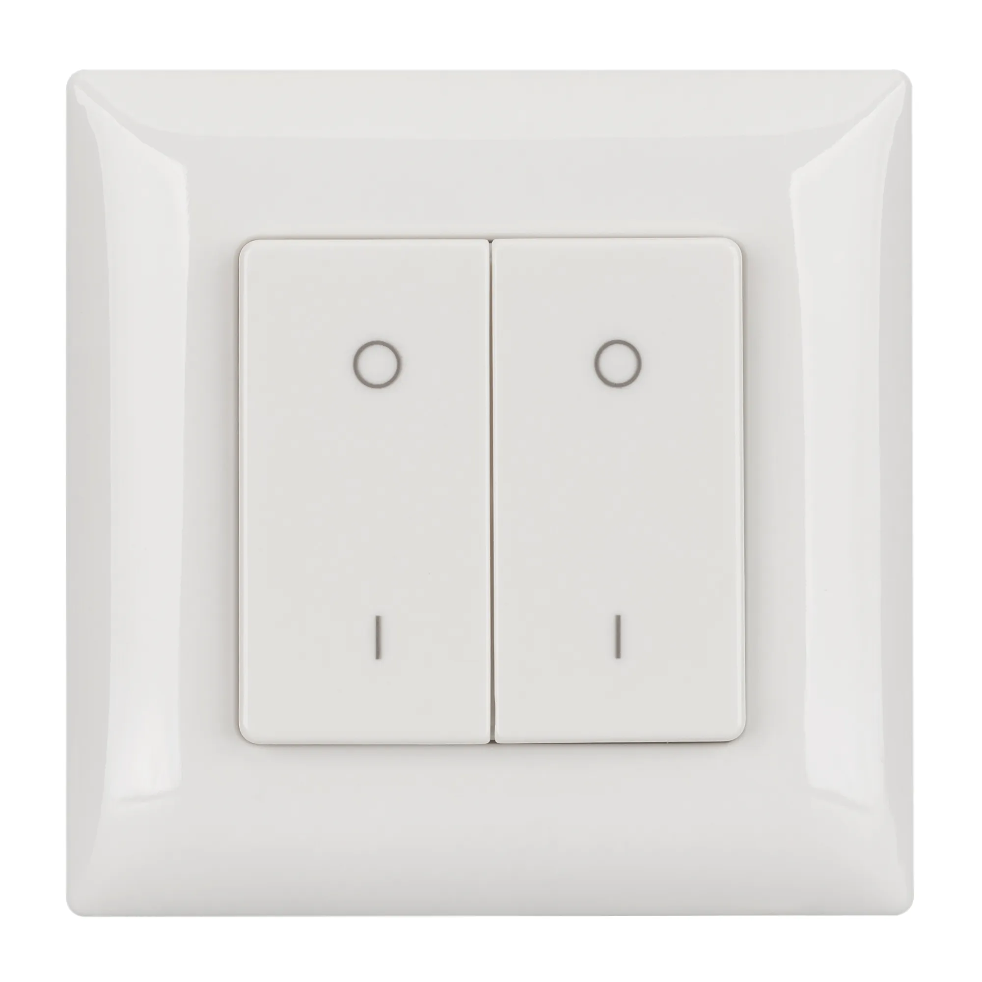 Накладная кнопочная панель 2.4 ГГц, цвет белый. Материал - пластик. Для управления одноцветными источниками света (ШИМ), 2 зоны управления. Питание/рабочее напряжение 3VDC от батарейки CR2032. Габариты 86х86х14 мм. Панель совместима с диммерами серии SMART.