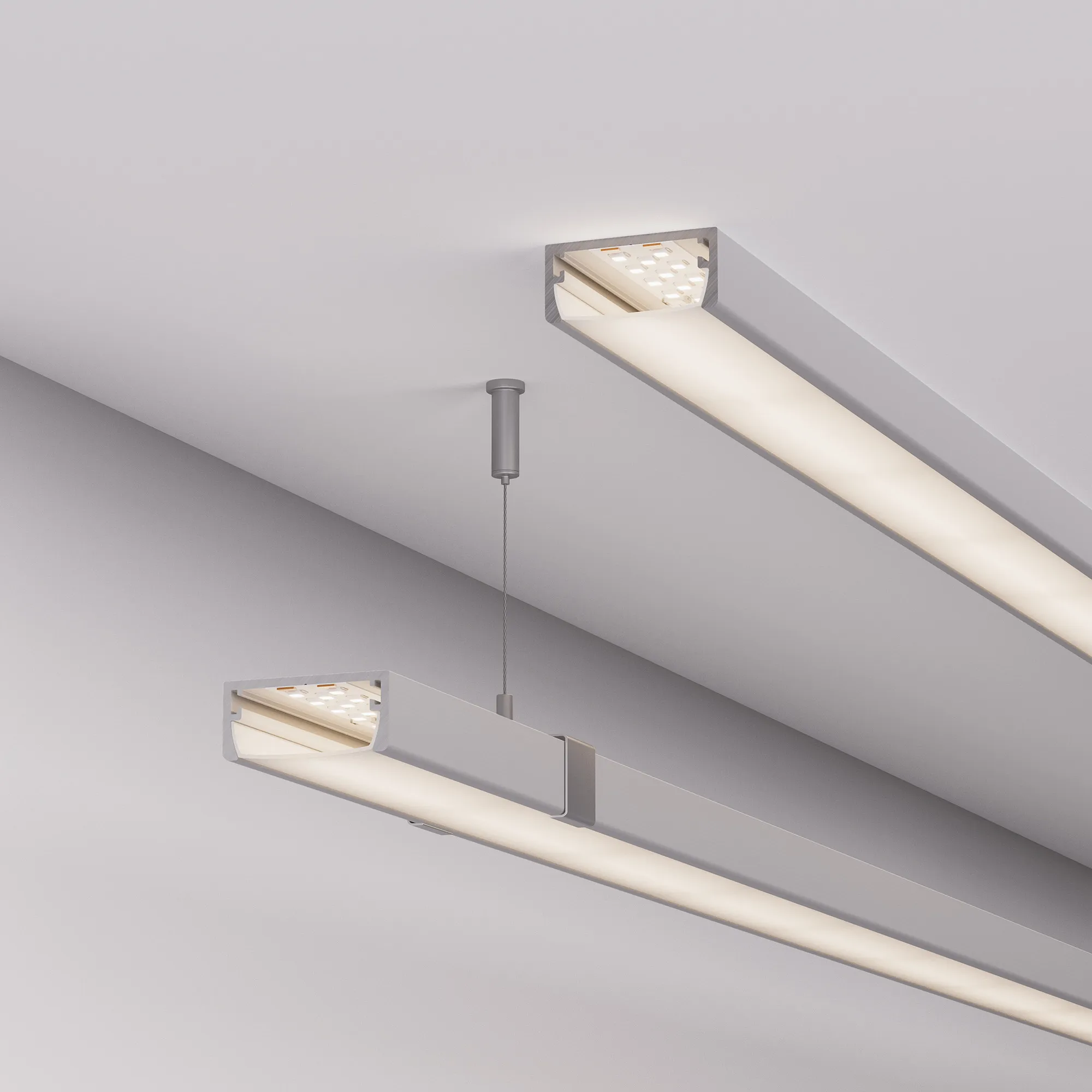 Алюминиевый анодированный накладной/подвесной профиль для светодиодных лент и линеек. Габаритные размеры (L×W×H): 2000x39x18 мм. Ширина площадки для ленты 31 мм. Экраны, заглушки и другие аксессуары приобретаются отдельно. Цена за 1 метр.