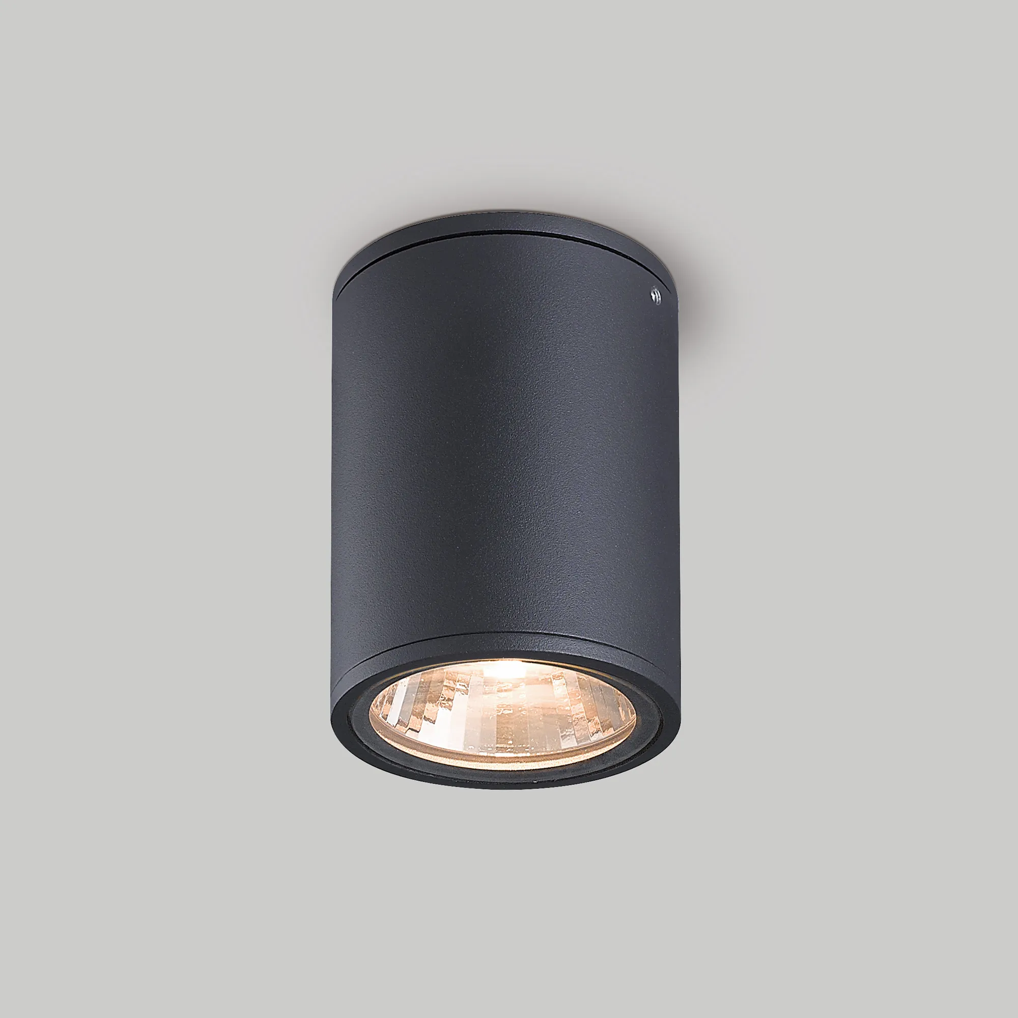 Накладной светильник 12Вт, серый алюминиевый корпус, оптическое закаленное стекло. Цвет ДНЕВНОЙ 4000K, св.поток 790лм, CRI(Ra)>80, угол 44°. Размер Ф90x137мм. IP54. Питание AC230V, 12Вт, встроенный драйвер 30-42 В, 300 мА.