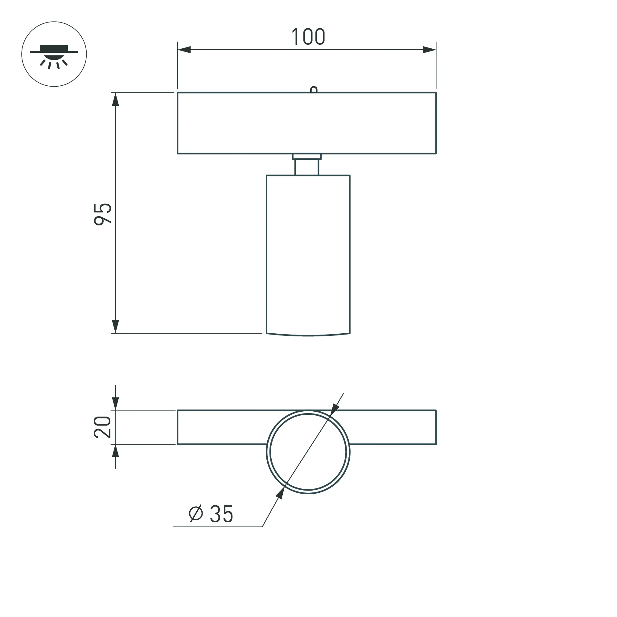 Светильник поворотный для магнитных треков шириной 25 мм, 5 Вт. Цвет свечения ДНЕВНОЙ 4000K, световой поток 350лм, угол 30°, CRI>90. Корпус прямоугольный, металл, цвет черный, IP20. Размеры LxWxH 100x20x95 мм. Входное напряжение DC24V, мощность 5 Вт. Драйвер DС24V/AC230V поставляется отдельно.Диаметр светоизлучающего модуля 35 мм. Диммируется только с 026407, 027633.