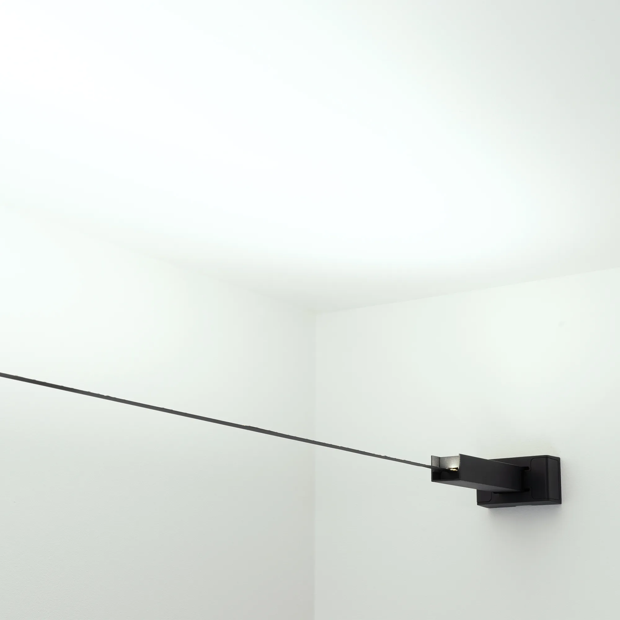 Лента-трос STINGRAY. В комплект входят: открытая светодиодная стабилизированная лента IC-A120, стальное полотно для ленты 10 м, ширина 15 мм, 2 настенных крепления, аксессуары для фиксации и монтажа. Цвет - черный.