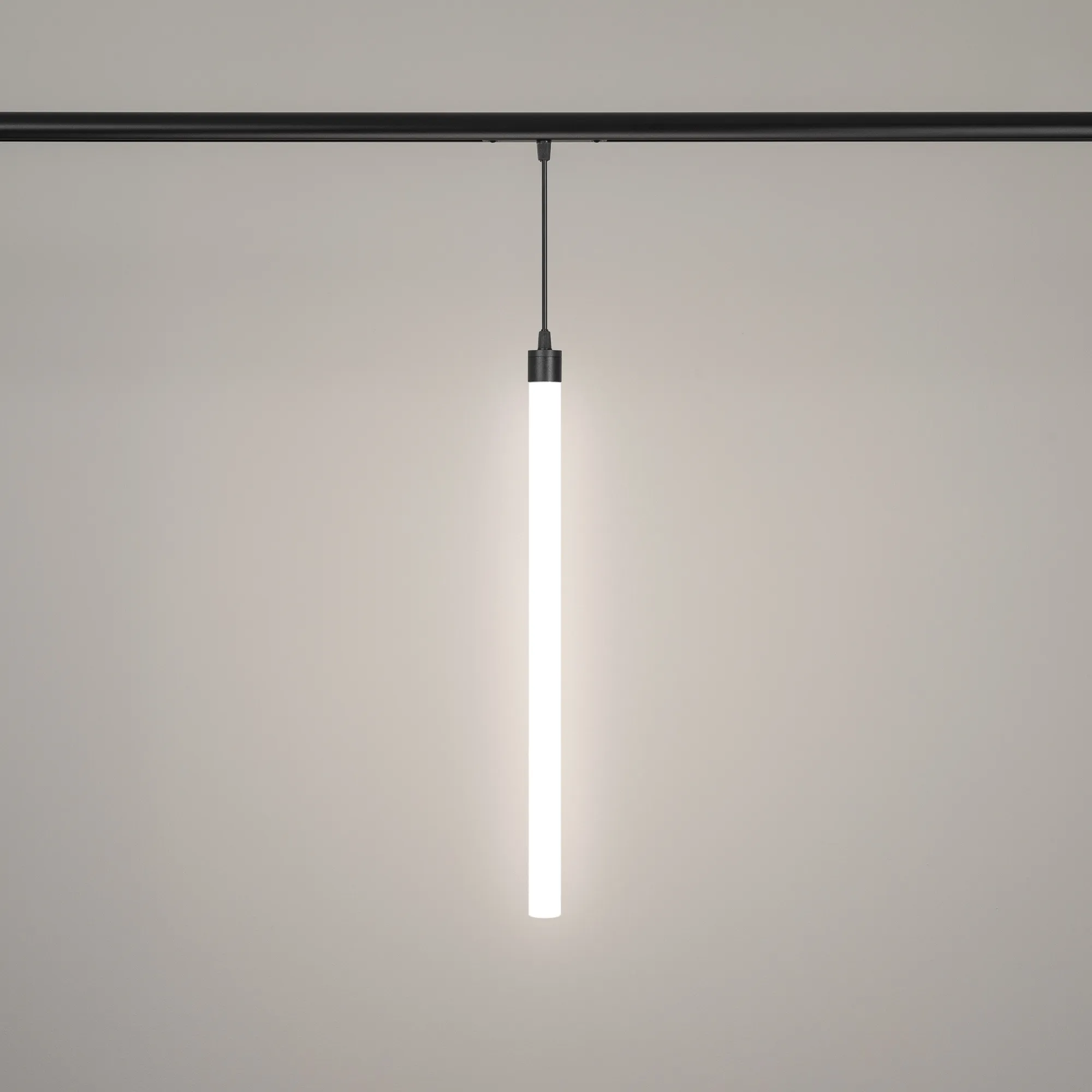 Светильник подвесной для магнитных треков серии FLEX. Мощность 7 Вт, св. поток 450 лм, 67 лм/Вт, дневной 4000 K, CRI>90, угол 360°, напряжение питания 48 В. Матовый белый фигурный корпус из ПВХ. Размер: диаметр 30 мм, длина 530 мм. Длина подвеса 195мм. Монтаж на магнитный трек FLEX.