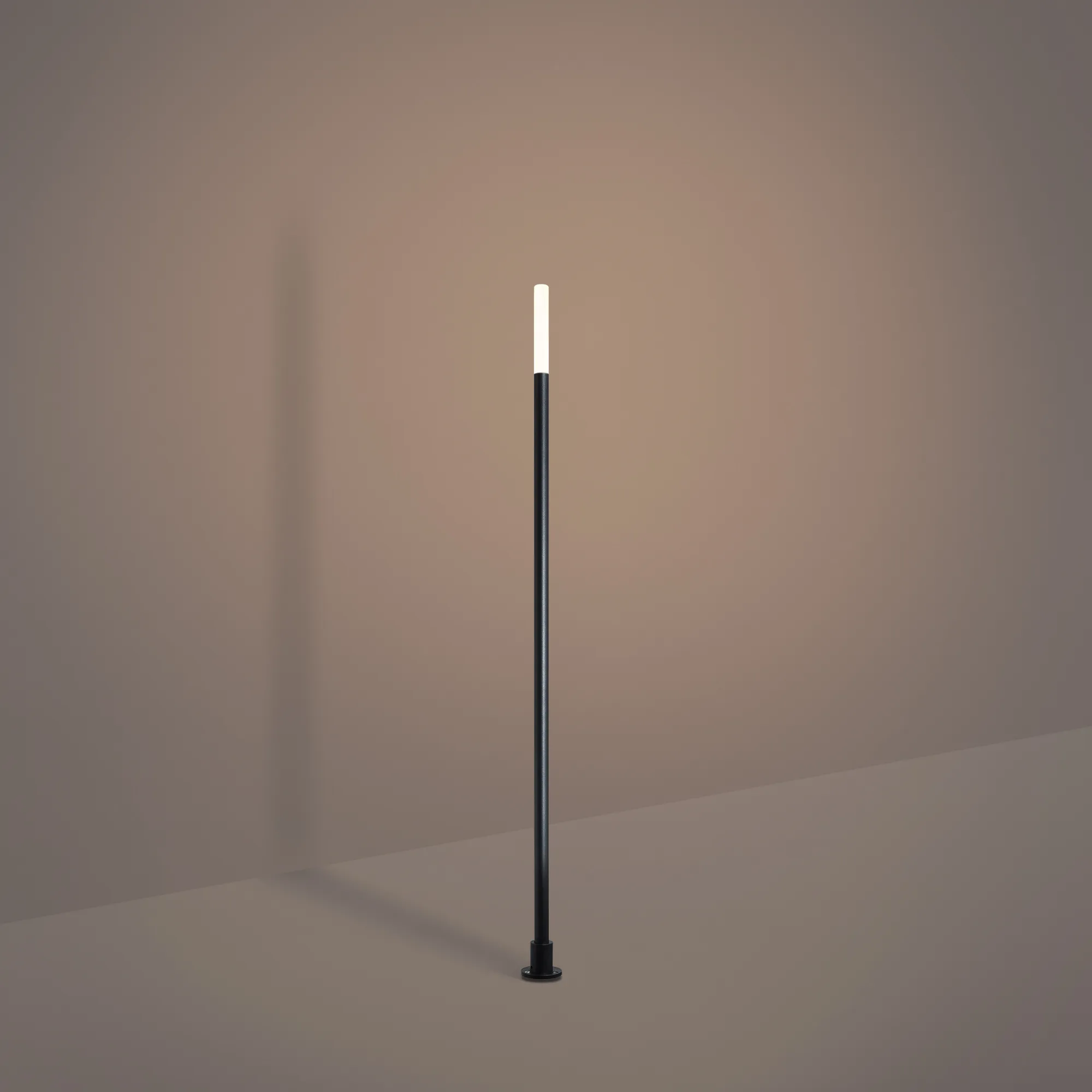 Декоративный ландшафтный светильник. Мощность 1.4 Вт, св. поток 35 лм, 25 лм/Вт, теплый 3000 K, CRI>80, угол 110°, напряжение питания 24 В. Темно-серый фигурный корпус из алюминия, экран PMMA, степень защиты IP65. Размер: диаметр 16 мм, высота 1000 мм. Монтаж в грунт. Длина питающего кабеля 1м. ВНИМАНИЕ! Светильник не поддерживает регулирование светового потока ШИМ.