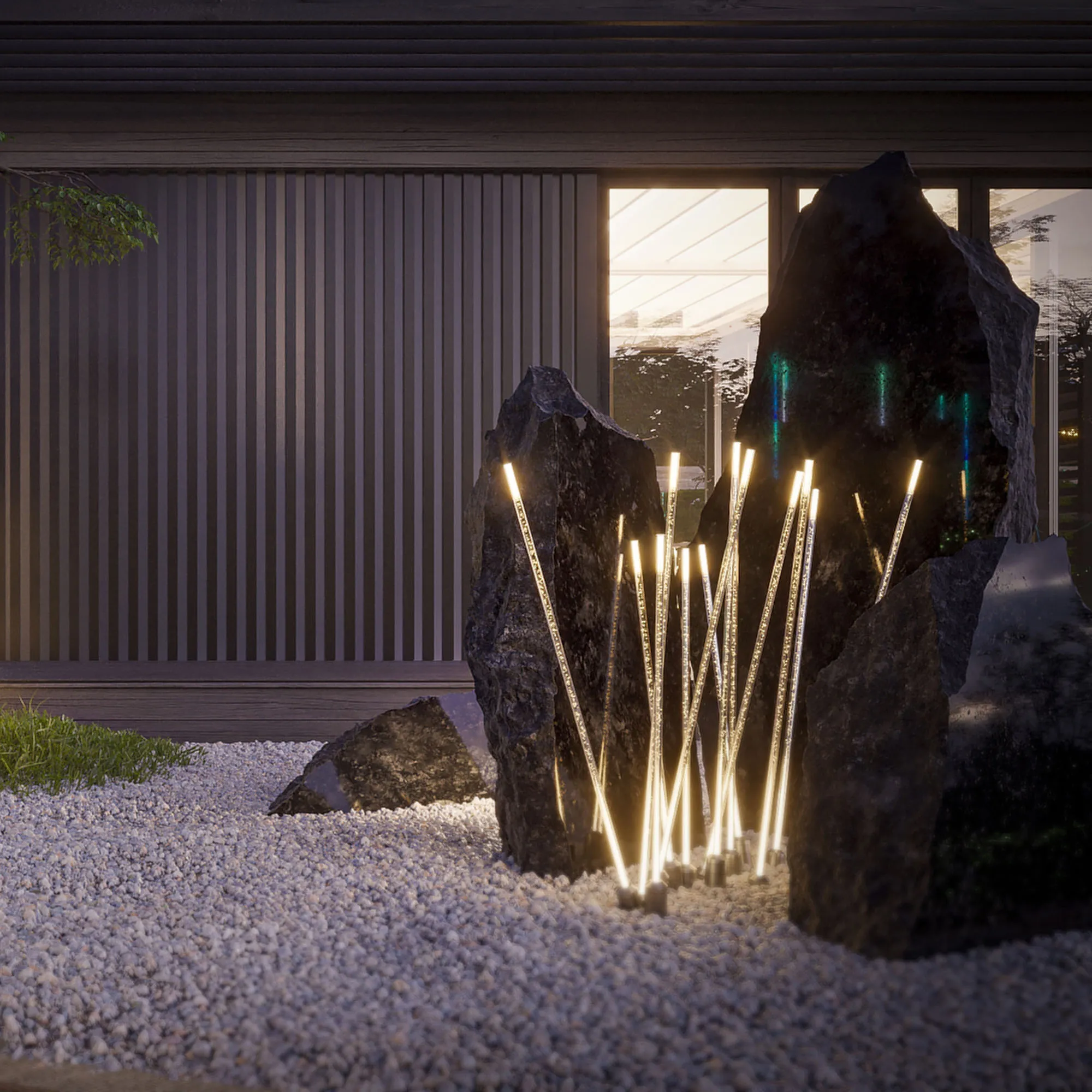 Декоративный ландшафтный светильник. Мощность 3.5 Вт, св. поток 40 лм, 11 лм/Вт, теплый 3000 K, CRI>80, угол 180°, напряжение питания 230 В. Темно-cерый фигурный корпус из алюминия, экран PMMA+PC, степень защиты IP65. Размер: диаметр 15 мм, высота 1200 мм. Монтаж в грунт.