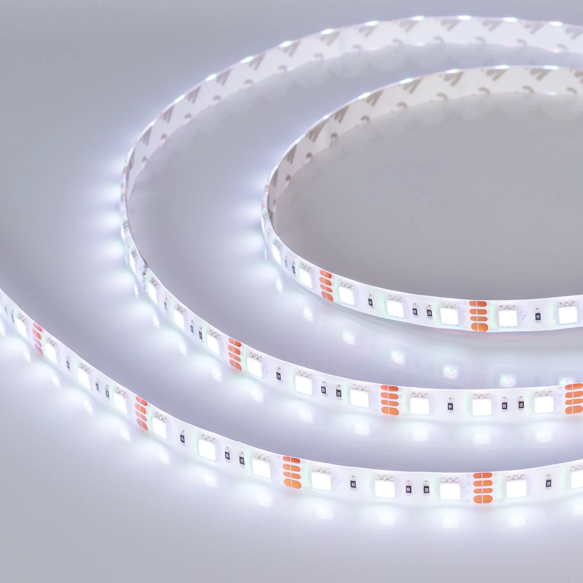 Мультицветная герметичная светодиодная лента RTW серии B60, IP65 (SE - силиконовый верхний слой). Светодиоды SMD 5060, 60 шт/м, белая плата шириной 10 мм, скотч 3M. Цвет RGB. Питание 12 В, мощность 14.4 Вт/м (72 Вт на 5 м), угол 120°. Размеры 5000x10x2.7 мм. Мин. отрезок 50 мм, 3 светодиода. Цена за 1 м.