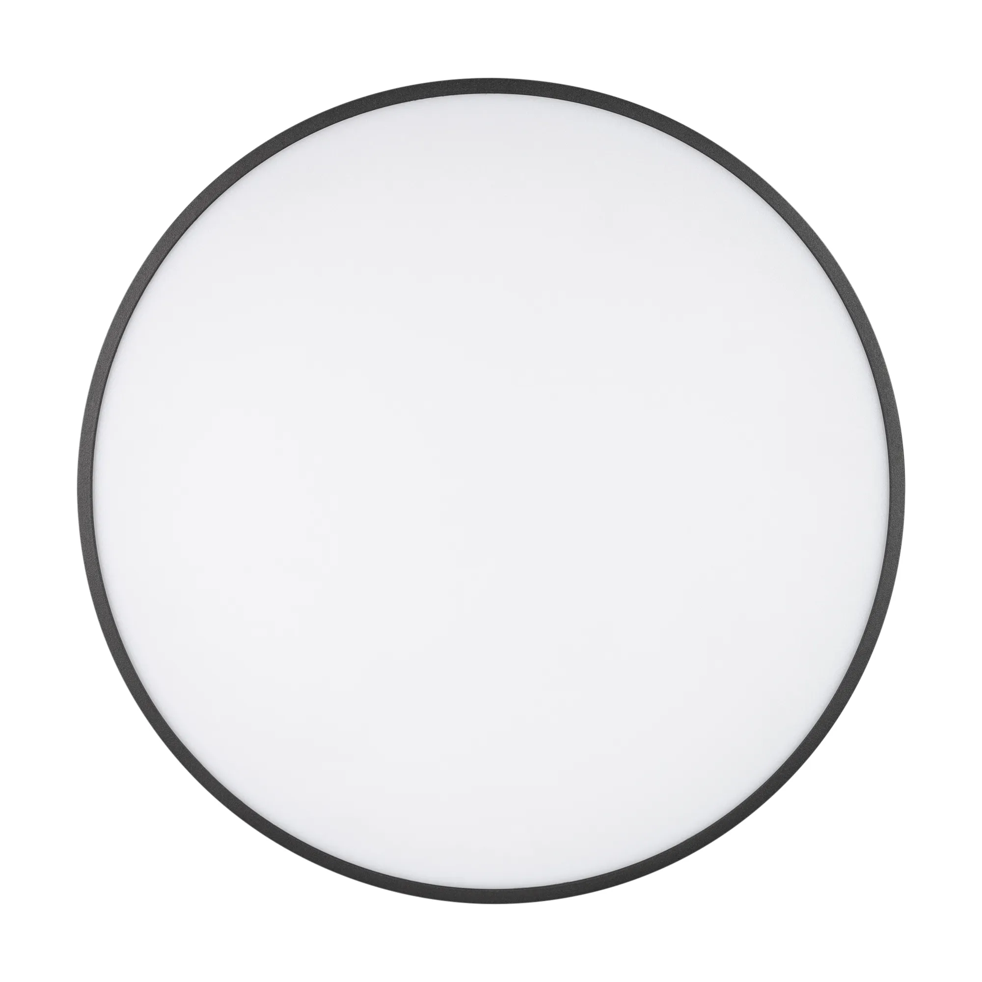 Накладной светильник. Мощность 30 Вт, св. поток 2200 лм, 75 лм/Вт, дневной 4000 K, CRI>90, угол 120°, напряжение питания 230 В. Черный круглый корпус из алюминия, экран PC, степень защиты IP40. Размер: диаметр 350 мм, высота 64 мм. Монтаж накладной. Драйвер 27-42 В, 800 мА, пульсация <5%.