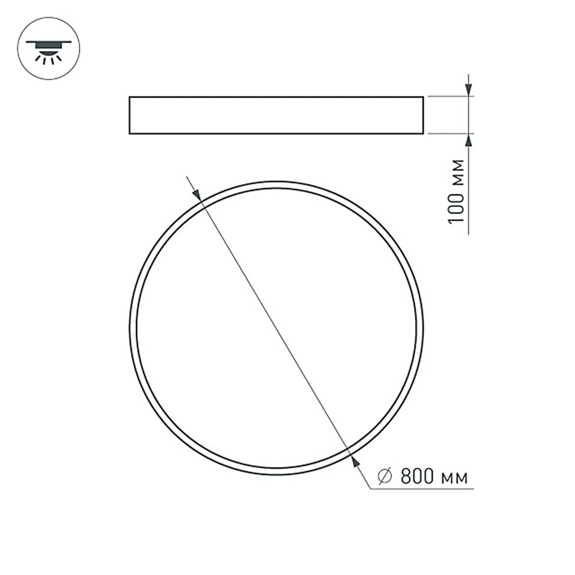 Накладной интерьерный светильник. Мощность 94 Вт, св. поток 8460 лм, 90 лм/Вт, теплый 3000 K, CRI>80, угол 120°, напряжение питания 230 В. Белый круглый корпус из алюминия, степень защиты IP20. Размер: диаметр 800 мм, высота 100 мм. Монтаж накладной. Драйвер 28-42 В, 1200 мА (2 шт.), пульсация <5%.