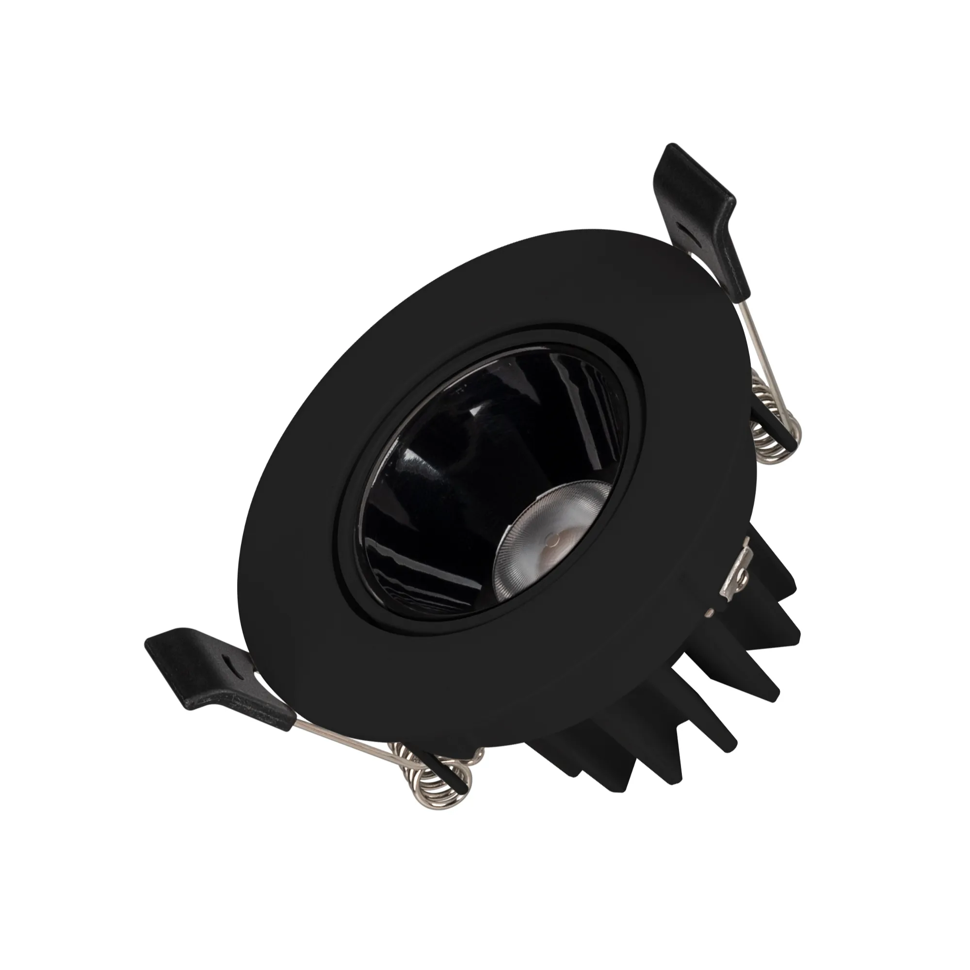 Встраиваемый поворотный светильник даунлайт. Мощность 8.4 Вт, св. поток 700 лм, 83 лм/Вт, теплый 3000 K, CRI>90, UGR<16, угол 32°, напряжение питания 230 В. Черный круглый корпус из алюминия, черный ГЛЯНЦЕВЫЙ отражатель из PMMA, степень защиты IP20. Размер: диаметр 82 мм, высота 51 мм. Монтаж встраиваемый, установочное отверстие: диаметр 75 мм. Драйвер 21-42 В, 200 мА, пульсация <2%.