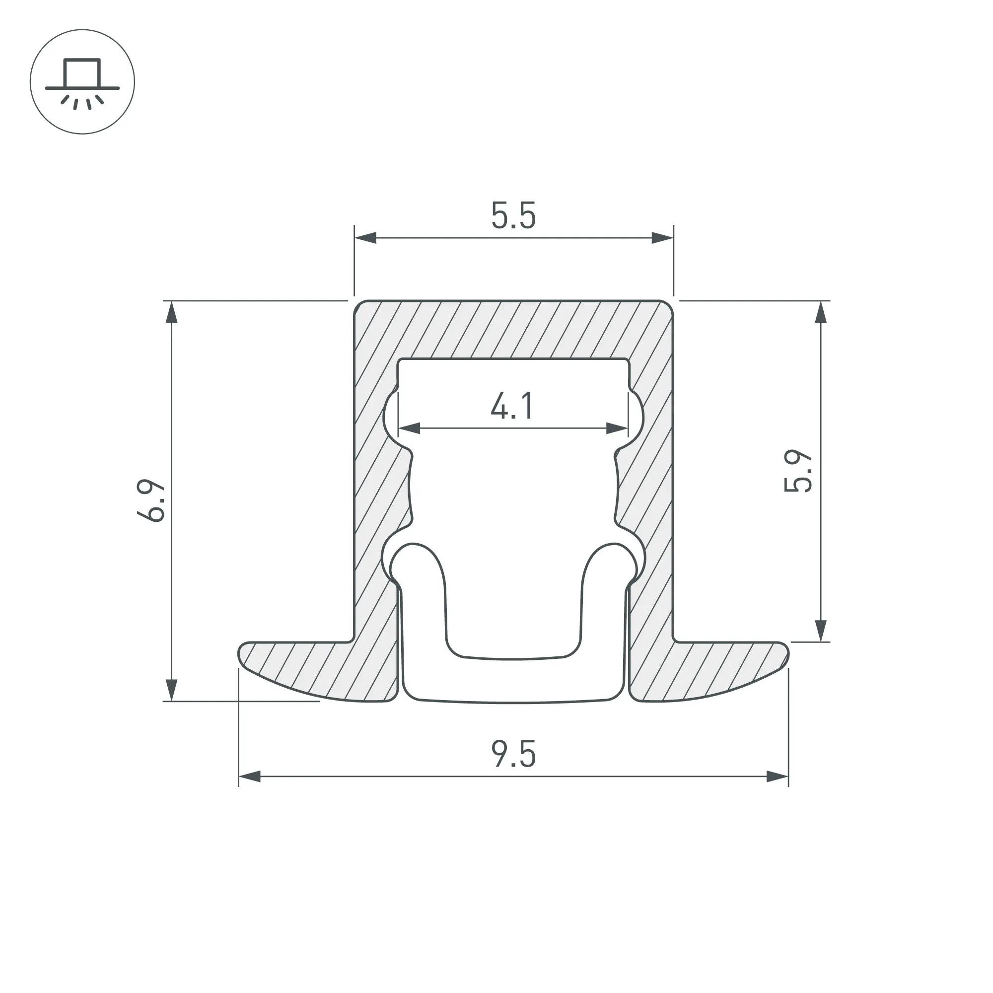 Алюминиевый анодированный профиль для светодиодных лент и линеек. Габаритные размеры (L×W×H): 2000x9,5x6,9 мм (с экраном). Ширина площадки для ленты 4,1 мм. Экраны, заглушки и другие аксессуары приобретаются отдельно. Рекомендуем использовать с лентой шириной не более 3,5 мм. Цена за 1 метр.