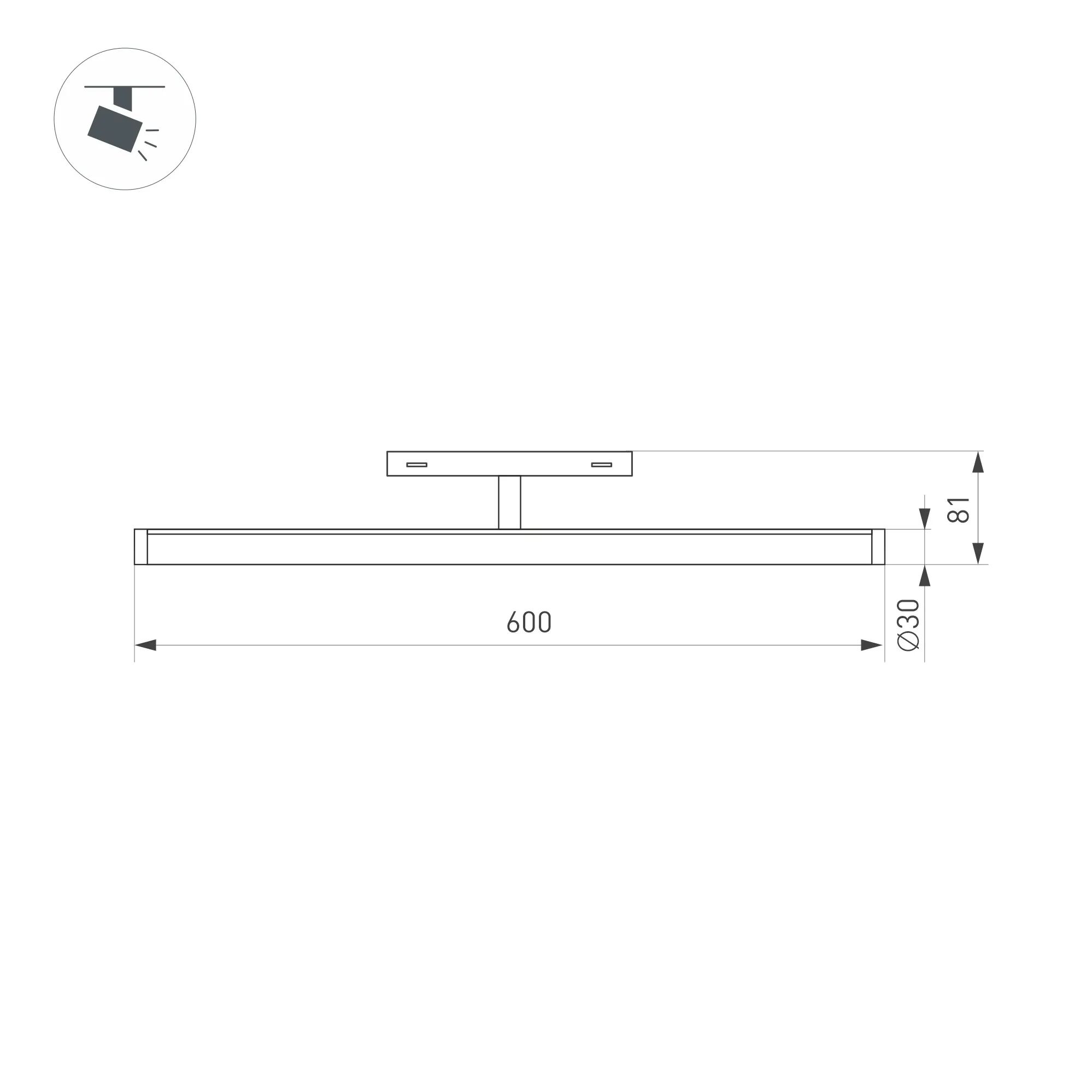 Светильник для магнитных треков MAG-ORIENT шириной 26 мм. Мощность 20 Вт, св. поток 2000 лм, 100 лм/Вт, дневной 4000 K, CRI>90, угол 180°, напряжение питания 48 В. Белый фигурный корпус из алюминия, экран поликарбонат, степень защиты IP20. Размер: диаметр 30 мм, длина 600 мм, высота 81 мм. Монтаж на трек MAG-ORIENT. Пульсация <1%.