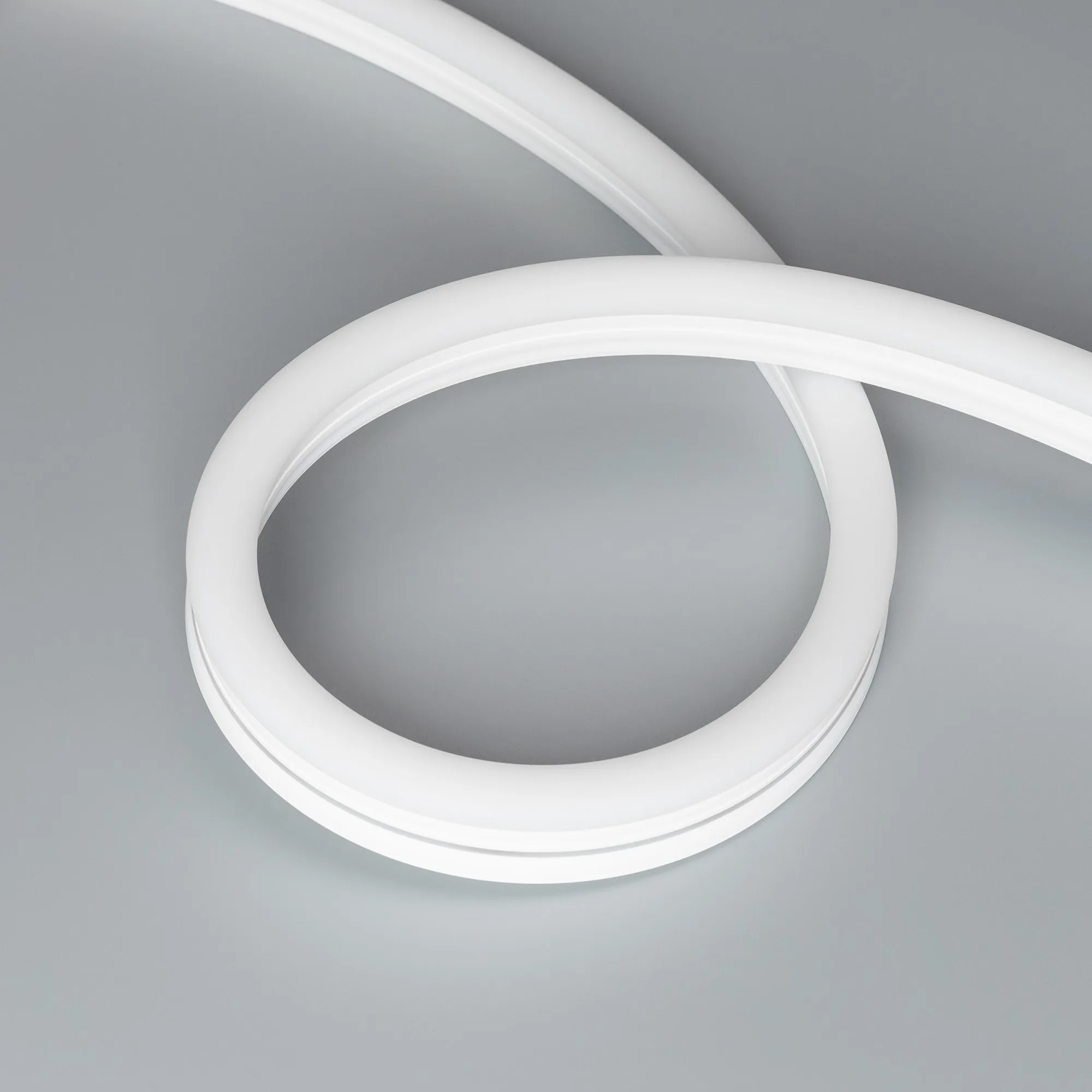 Гибкая герметичная лента (неон серии MOONLIGHT), сечение 12×24 мм. Светодиоды SMD 2835 140 шт/м. Цвет свечения ДНЕВНОЙ (4000 К), индекс цветопередачи CRI>80, световой поток 430 лм/м, угол излучения 178°. Мощность 9.6 Вт/м, питание 24 В. Класс пылевлагозащиты IP68. Размеры 5000×12×24 мм. Мин. отрезок 50 мм. Горизонтальный изгиб SIDE, минимальный радиус изгиба 60 мм. Вывод кабеля с двух сторон. Катушка 5 м. Цена за 1 м. Гарантия 3 года.
