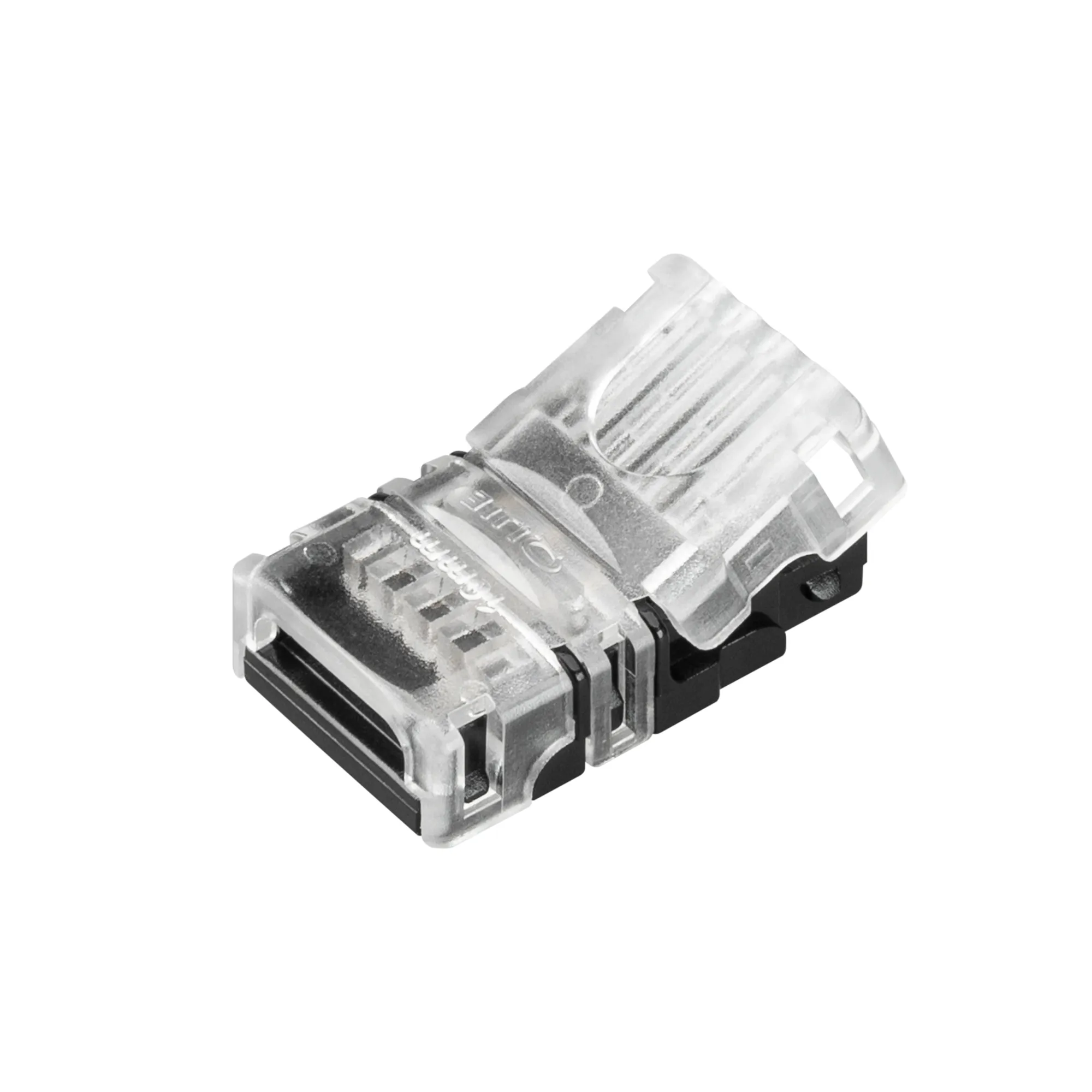 Одиночный коннектор (без провода) для подключения питания к открытым RGB лентам шириной 10 мм. Очистка провода питания (0,5-1,0 мм2) от изоляции не требуется. Материал - прозрачный пластик. Максимальный допустимый ток 3 А, напряжение 3-24 В, степень защиты IP33. Цена за 1 шт.
