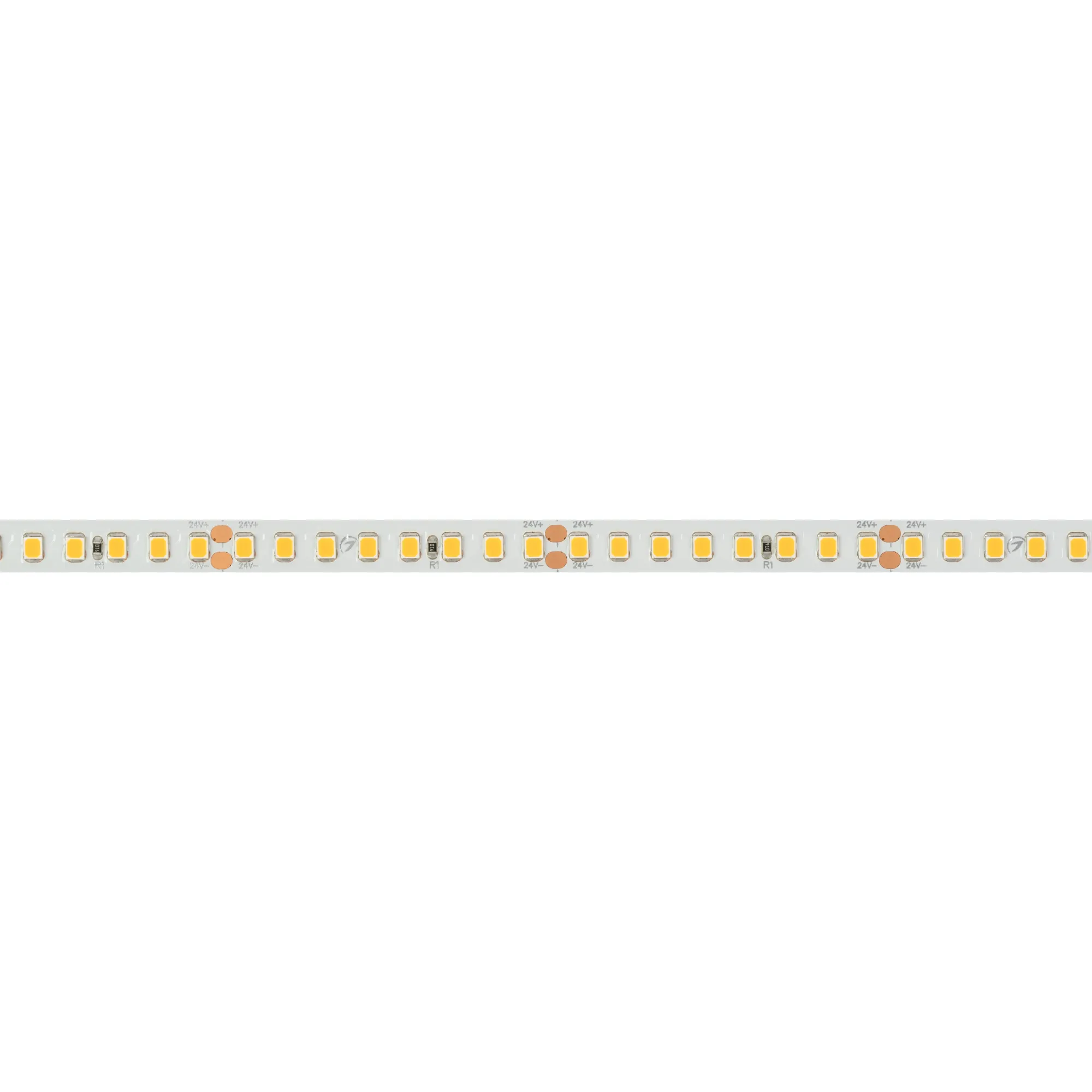 Светодиодная высокоэффективная лента UL серии A160. Светодиоды SMD 2835, 160 шт/м, белая плата шириной 8 мм, скотч 3M. Цвет ТЕПЛЫЙ 2700K, индекс цветопередачи CRI>90, угол 120°. Питание 24 В, мощность 12 Вт/м (60 Вт на 5 м). Размеры 5000x8x1.5 мм. Мин. отрезок 50 мм, 8 светодиодов. Цена за 1 м. Обязательна установка на профиль.