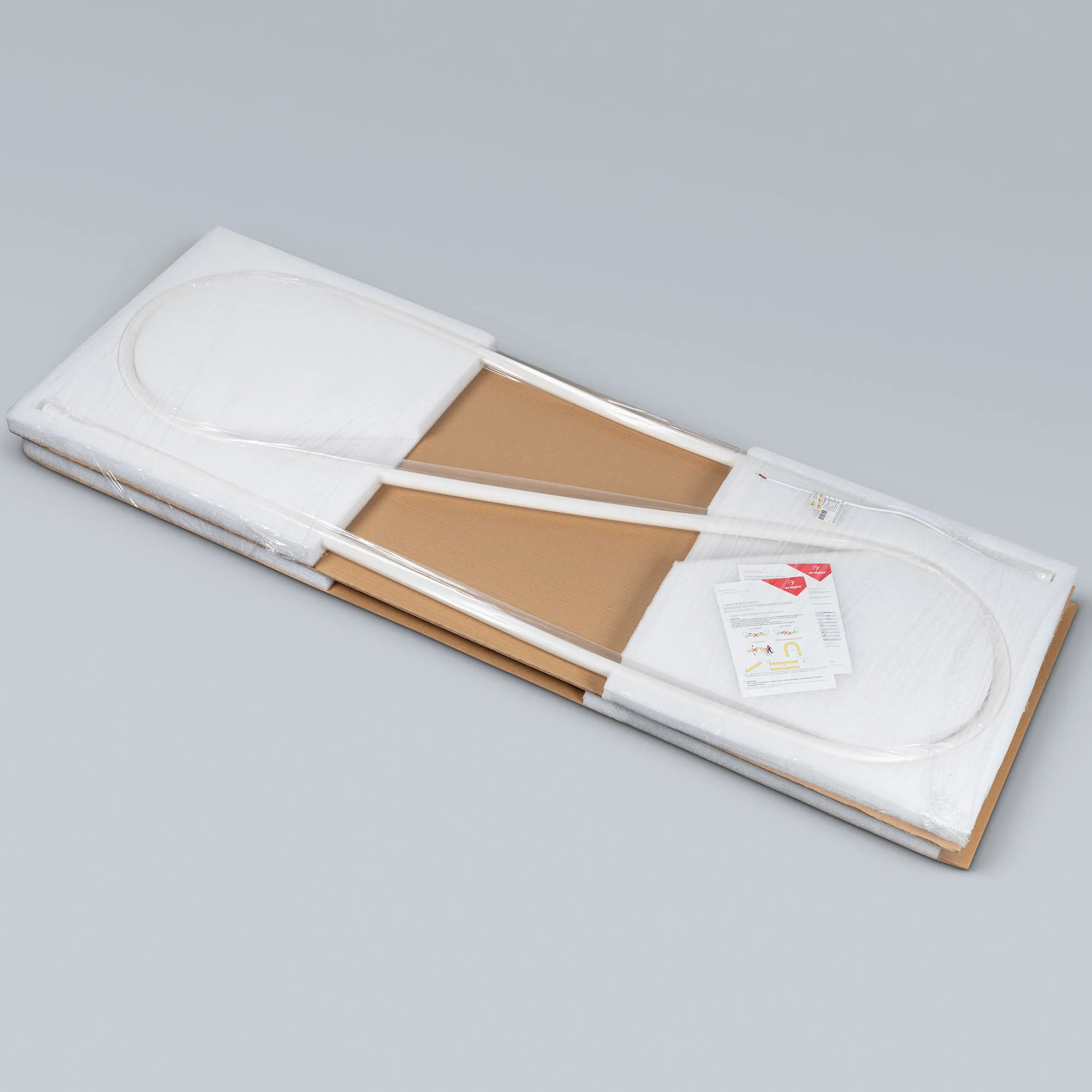 Гибкая герметичная лента (неон серии MOONLIGHT), сечение 25×25 мм. Светодиоды CSP 1088 шт/м. Цвет свечения ТЕПЛЫЙ БЕЛЫЙ (2300 К), индекс цветопередачи CRI>90, световой поток 920 лм/м, угол излучения 360°. Мощность 20 Вт/м, питание 24 В. Класс пылевлагозащиты IP65. Размеры 5000×25×25 мм. Резка не предусмотрена. Форма изгиба ленты фиксируется. Изгиб согласно метки на корпусе, минимальный радиус изгиба 150 мм. Кабель питания длиной 500 мм, вывод с одной стороны перпендикулярно линии сечения неона. Катушка 5 м. Цена за 1 м. В виду особенности конструкции ленты, упаковка имеет размеры 1600x980x260 мм. Гарантия 3 года.