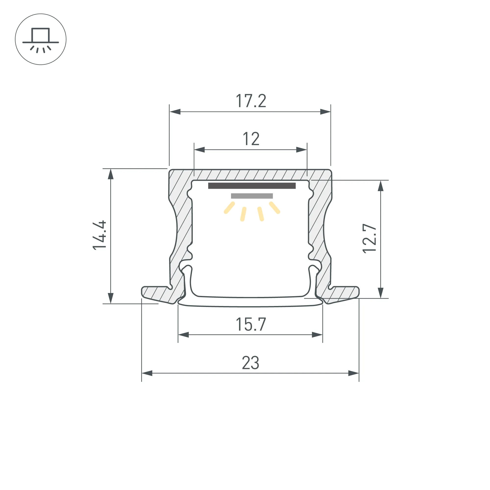Алюминиевый встраиваемый профиль для светодиодных лент и линеек. Цвет - белый RAL9003 (порошковая окраска). Габаритные размеры (L×W×H): 2000x23x14,4 мм. Паз для установки 17 мм. Ширина площадки для ленты 12 мм. Экраны, заглушки и другие аксессуары приобретаются отдельно. Цена за 1 метр.