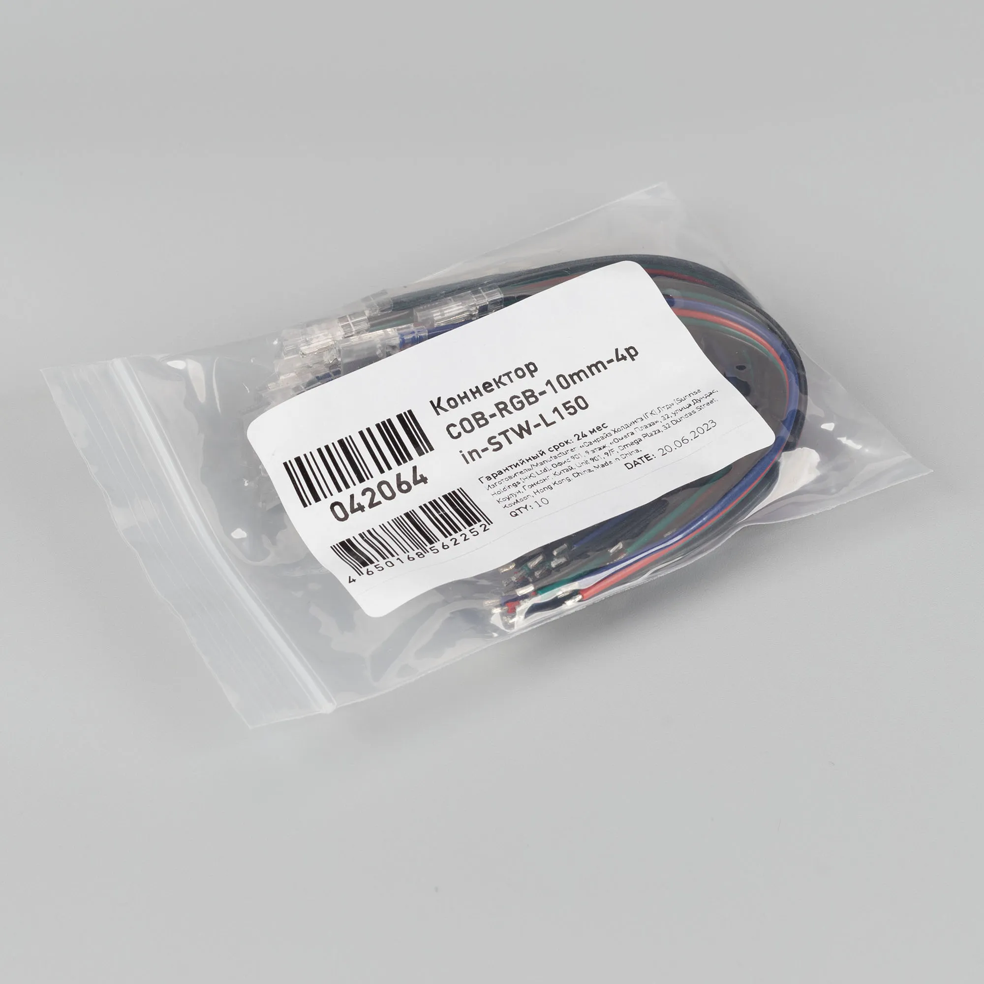 Коннектор COB (с проводом 150 мм) для подключения питания RGB лент COB шириной 10 мм. Материал - прозрачный пластик. Максимальный допустимый ток 3 А, максимальное напряжение 24 В. Цена за 1 шт. Пакет 10 шт.