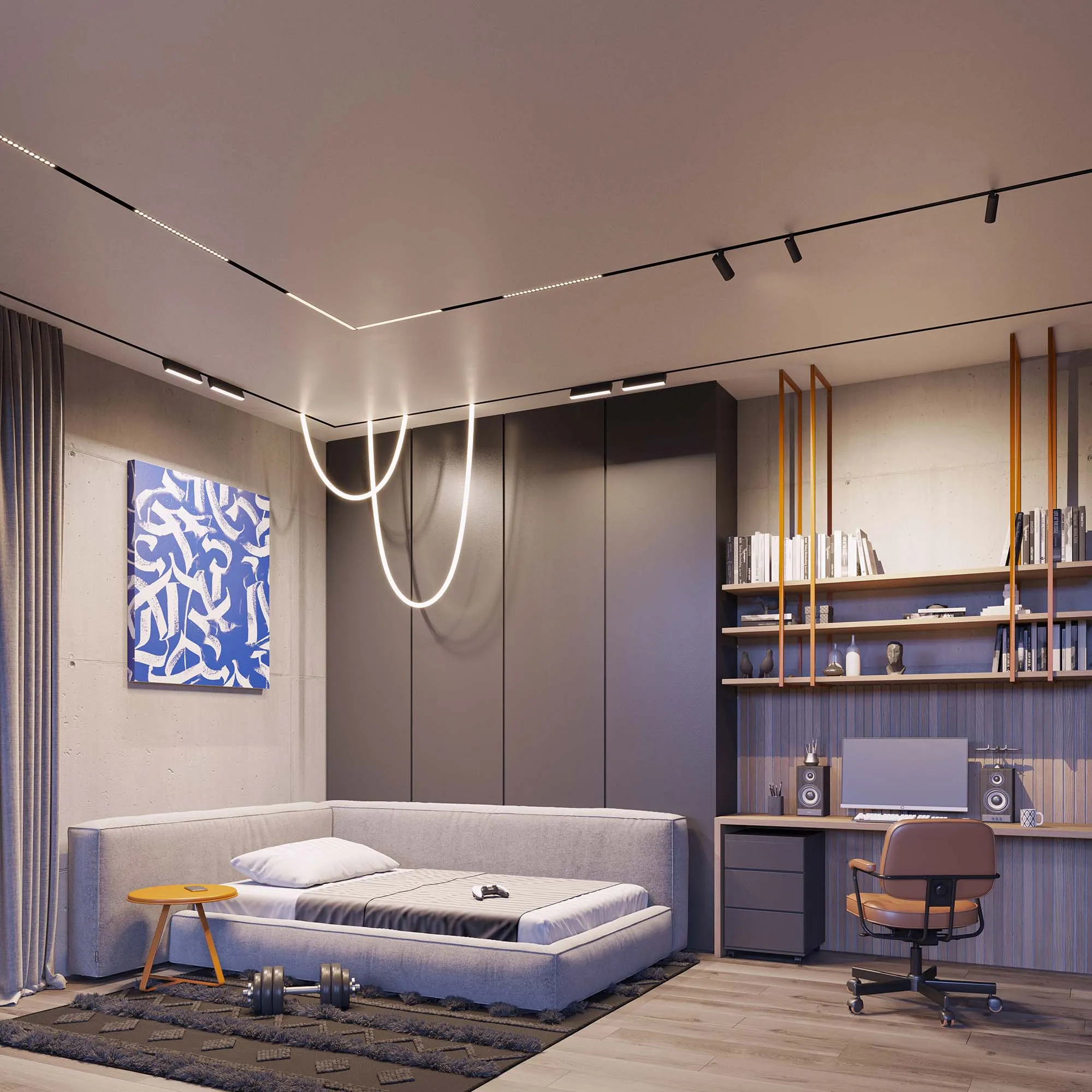 Светильник гибкий для магнитных треков серии ORIENT. Мощность 70 Вт, св. поток 4235 лм, 60 лм/Вт, теплый 3000 K, CRI>90, угол 360°, напряжение питания 48 В. Матовый белый фигурный корпус из силикона с черными креплениями. Размер: диаметр 25 мм, длина 5000 мм. Монтаж на магнитный трек ORIENT. Адаптеры входят в комплект.