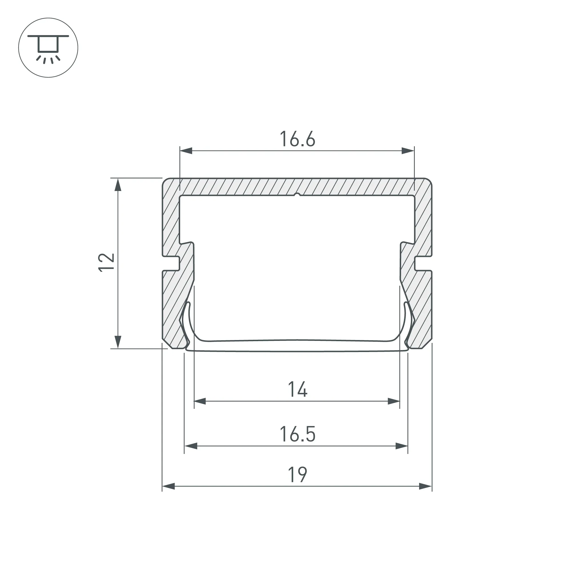 Расширенная площадка для лент в оболочке до 15мм. Класс пылевлагозащиты – IP67 (при соблюдении технологии герметизации). Габаритные размеры (L×W×H): 3000x19x12 мм. Ширина площадки для ленты 16 мм. Экраны, заглушки и другие аксессуары приобретаются отдельно. Цена за 1 метр.