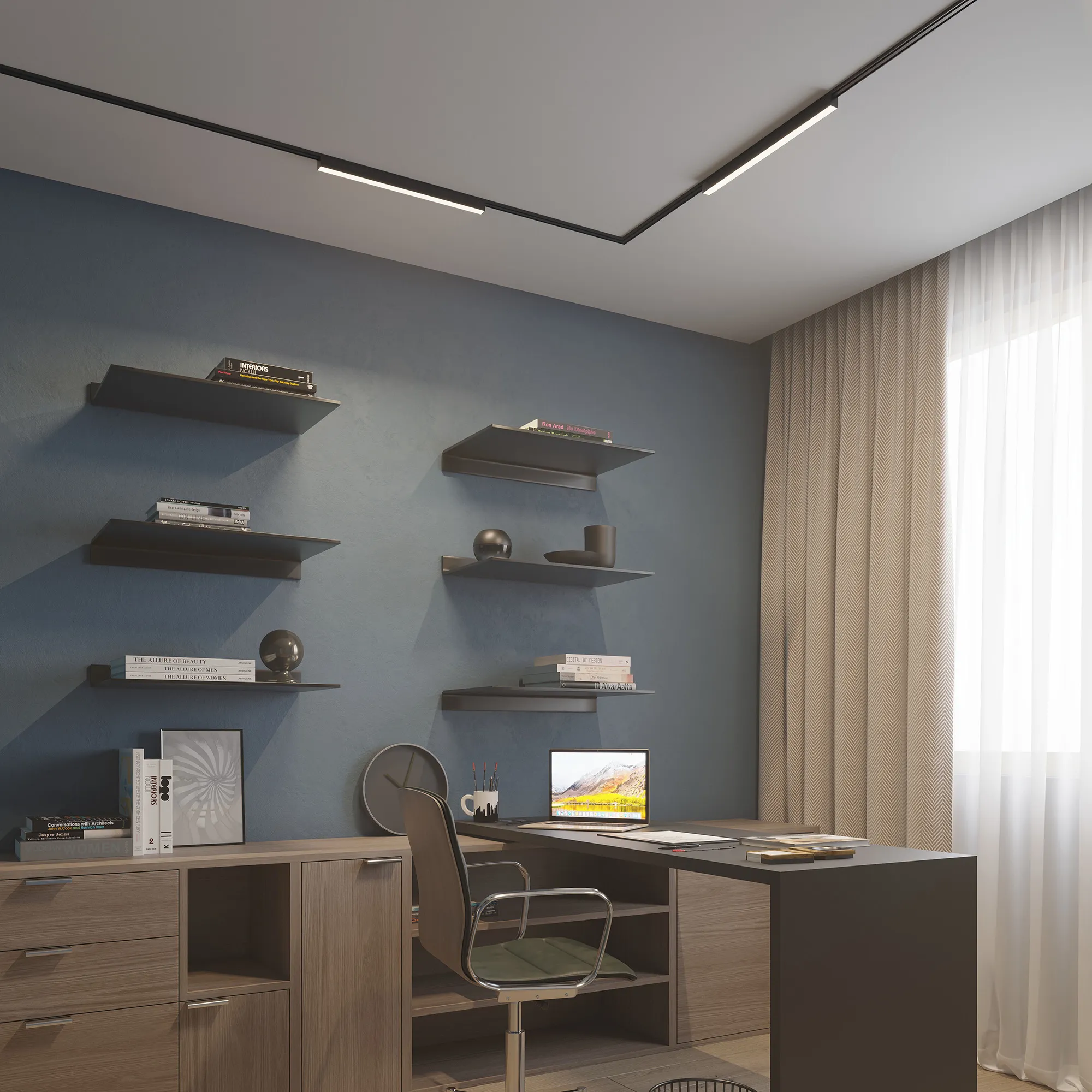 Светильник для магнитных треков MAG-VIBE. Мощность 24 Вт, св. поток 1820 лм, 76 лм/Вт, дневной 4000 K, CRI>90, угол 100°, напряжение питания 48 В. Черный прямоугольный корпус из алюминия, экран поликарбонат, степень защиты IP20. Размер: длина 485 мм, ширина 25 мм, высота 29 мм. Монтаж на трек MAG-VIBE. Пульсация <1%.