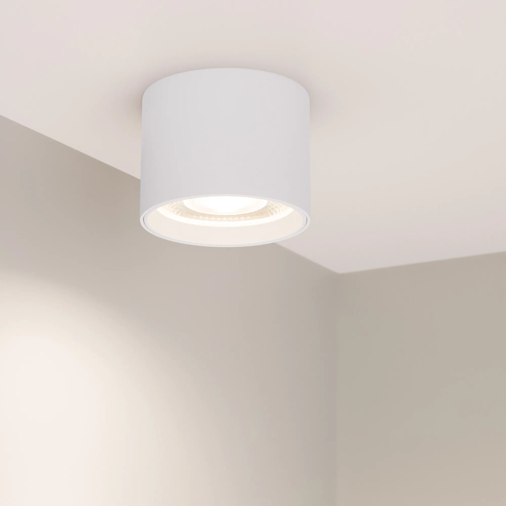 Накладной интерьерный светильник. Мощность 10 Вт, св. поток 780 лм, 78 лм/Вт, дневной 4000 K, CRI>90, угол 24°, напряжение питания 230 В. Белый круглый корпус, степень защиты IP54. Размер: диаметр 77 мм, высота 65 мм. Монтаж накладной. Драйвер встроенный, пульсация <5 %.