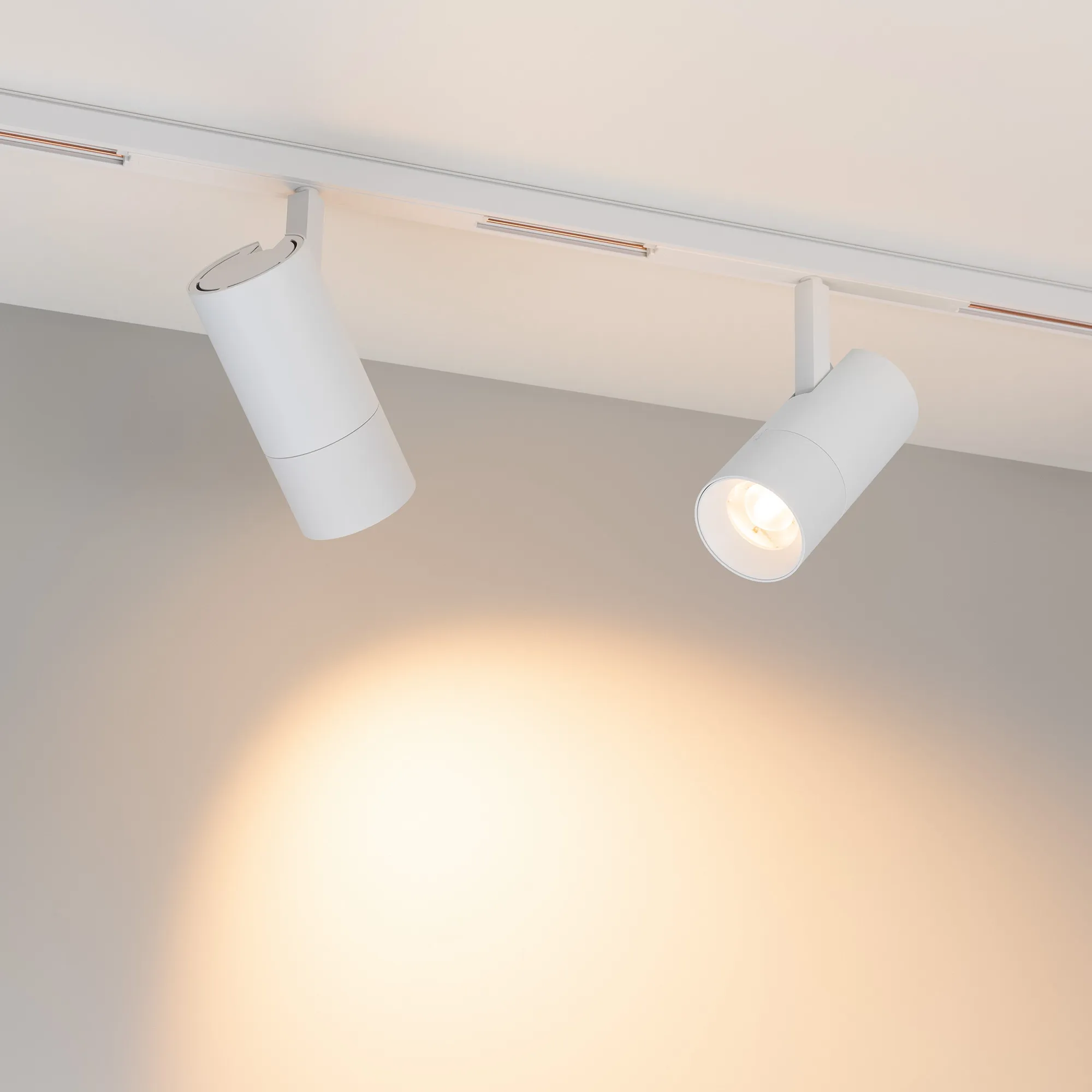 Светильник для магнитных треков MAG-ORIENT шириной 26 мм, с управлением по DALI. Мощность 15 Вт, св. поток 1100 лм, 73 лм/Вт, теплый 3000 K, CRI>90, угол 34-60°, напряжение питания 48 В. Белый фигурный корпус из металл, экран поликарбонат, степень защиты IP20. Размеры LxWxH 204x66x211 мм.
