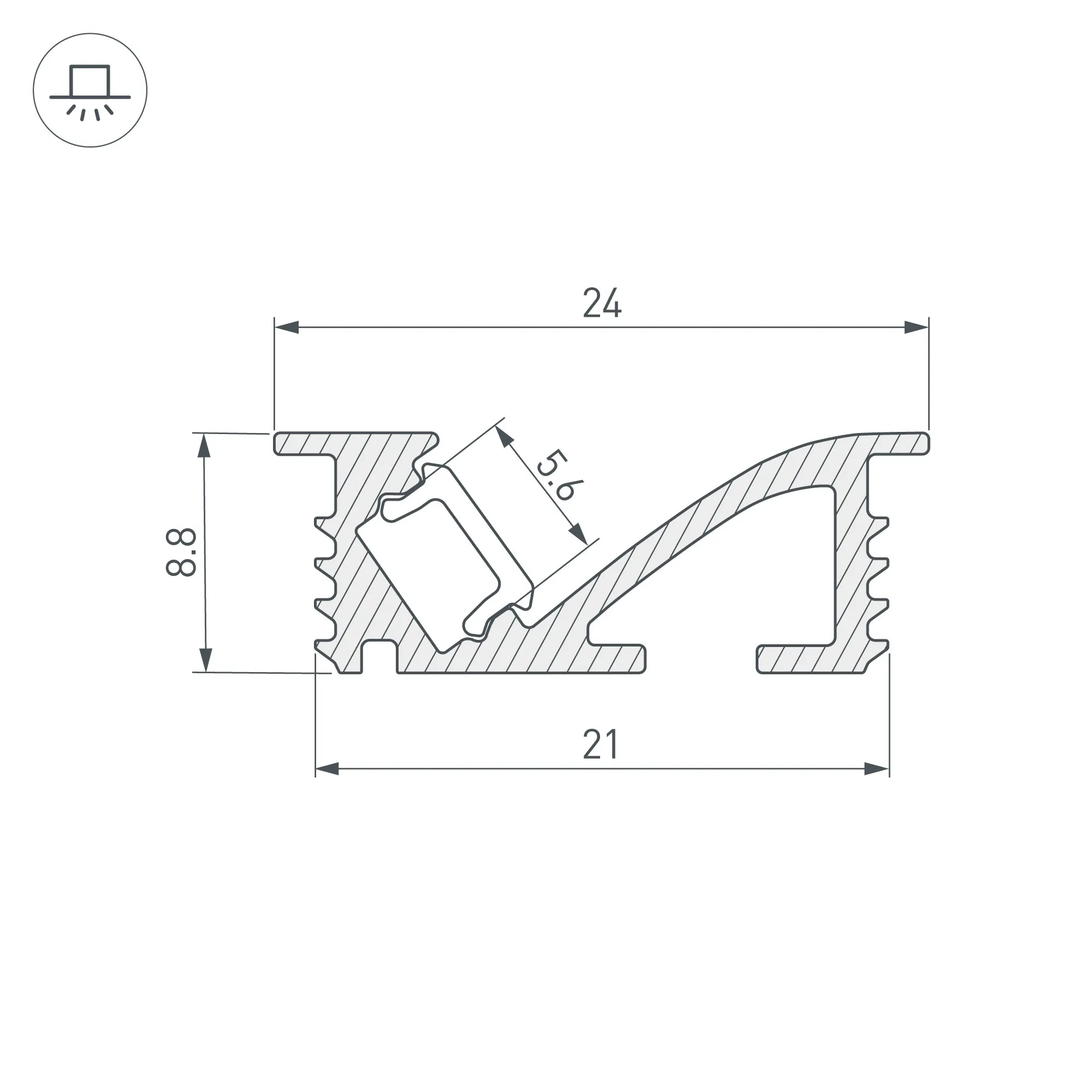 Алюминиевый анодированный профиль черного цвета для светодиодных лент и линеек с боковым свечением. Габаритные размеры (L×W×H): 2000x24x8,8 мм, паз для установки 20,3 мм. Ширина площадки для ленты 5,6 мм. Экраны, заглушки и другие аксессуары приобретаются отдельно. Цена за 1 метр.