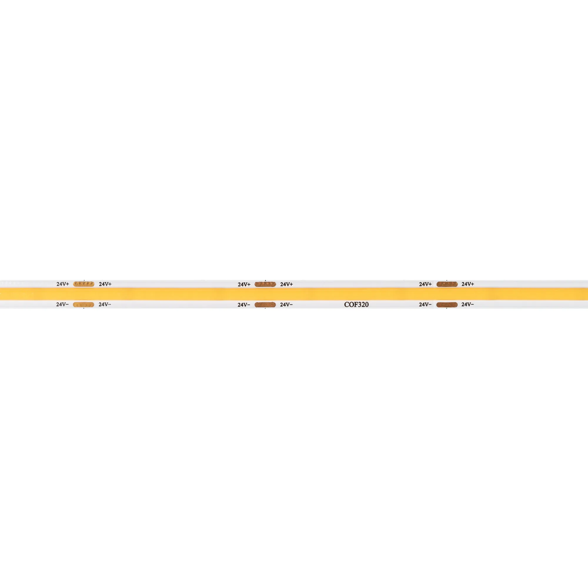 Светодиодная лента сплошного свечения COB серии X320. Светодиоды CSP, 320 шт/м, белая плата шириной 8 мм, скотч 3M. Цвет ТЕПЛЫЙ 3000K, индекс цветопередачи CRI>90, угол 175°. Питание 24 В, мощность 8 Вт/м (40 Вт на 5 м). Размеры 5000х8х2 мм. Мин. отрезок 50 мм. Цена за 1 м.