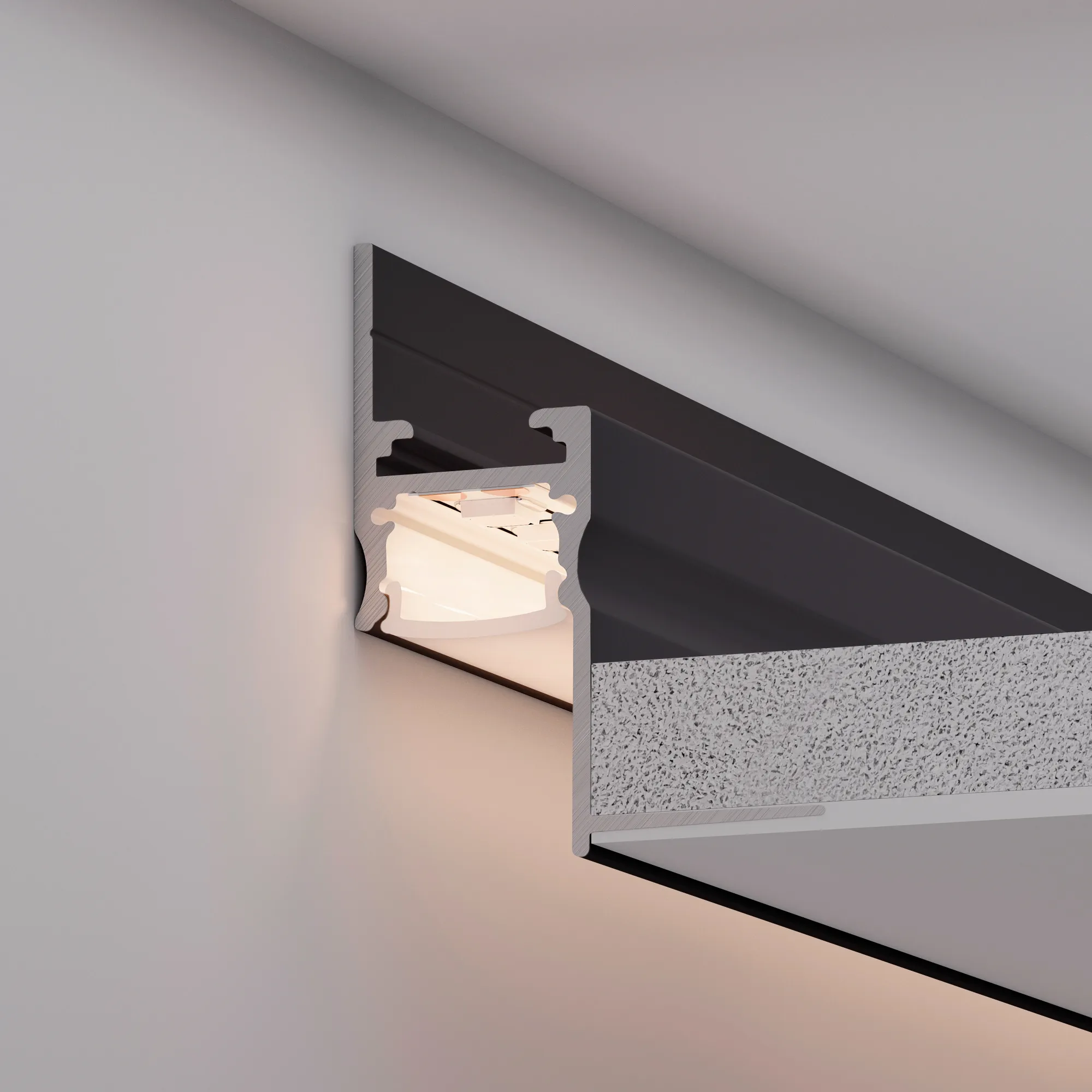 Алюминиевый встраиваемый профиль для светодиодных лент и линеек. Цвет - черный RAL9005 (порошковая окраска). Габаритные размеры (L×W×H): 2000х41х51 мм. Ширина площадки для ленты 13,3 мм. Экраны, заглушки и другие аксессуары приобретаются отдельно. Цена за 1 метр.