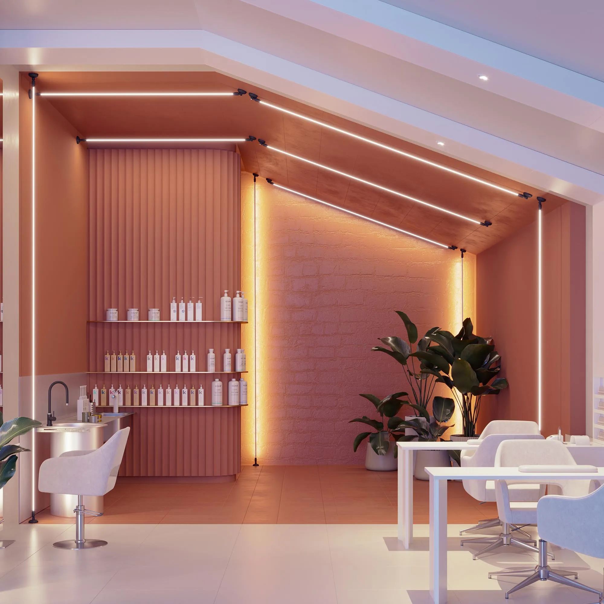 Система креплений Stingray-R2 для светодиодной ленты. Цвет - черный. Фиксирует светодиодную ленту в свободном пространстве между двумя стенами. Максимальная длина 10 м. В комплект входит: гибкая стальная полоса для ленты длиной 10 м и шириной 15 мм, 2 настенных крепления. Лента и источник питания комплектуются по запросу.