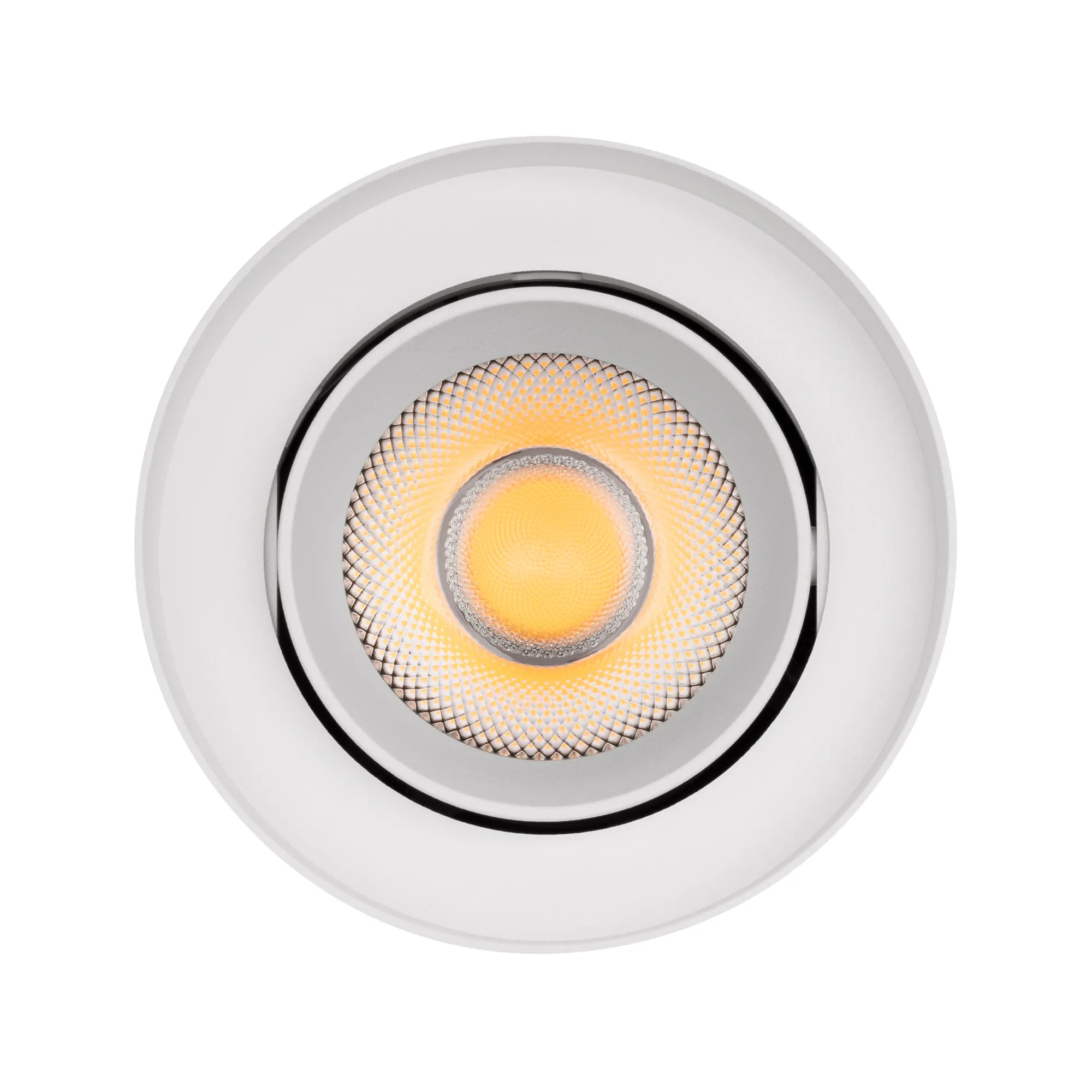 Накладной интерьерный светильник. Мощность 18 Вт, св. поток 1700 лм, 99 лм/Вт, теплый 3000 K, CRI>90, угол 36°, регулируемое направление луча 40°(20+20), поворотный световой модуль вокруг своей оси на 340°, UGR <11, напряжение питания 230 В. Белый круглый корпус из алюминия, степень защиты IP54. Размер: диаметр 110 мм, высота 145 мм. Монтаж накладной. Драйвер 27-43 В, 450 мА, пульсация <1%.