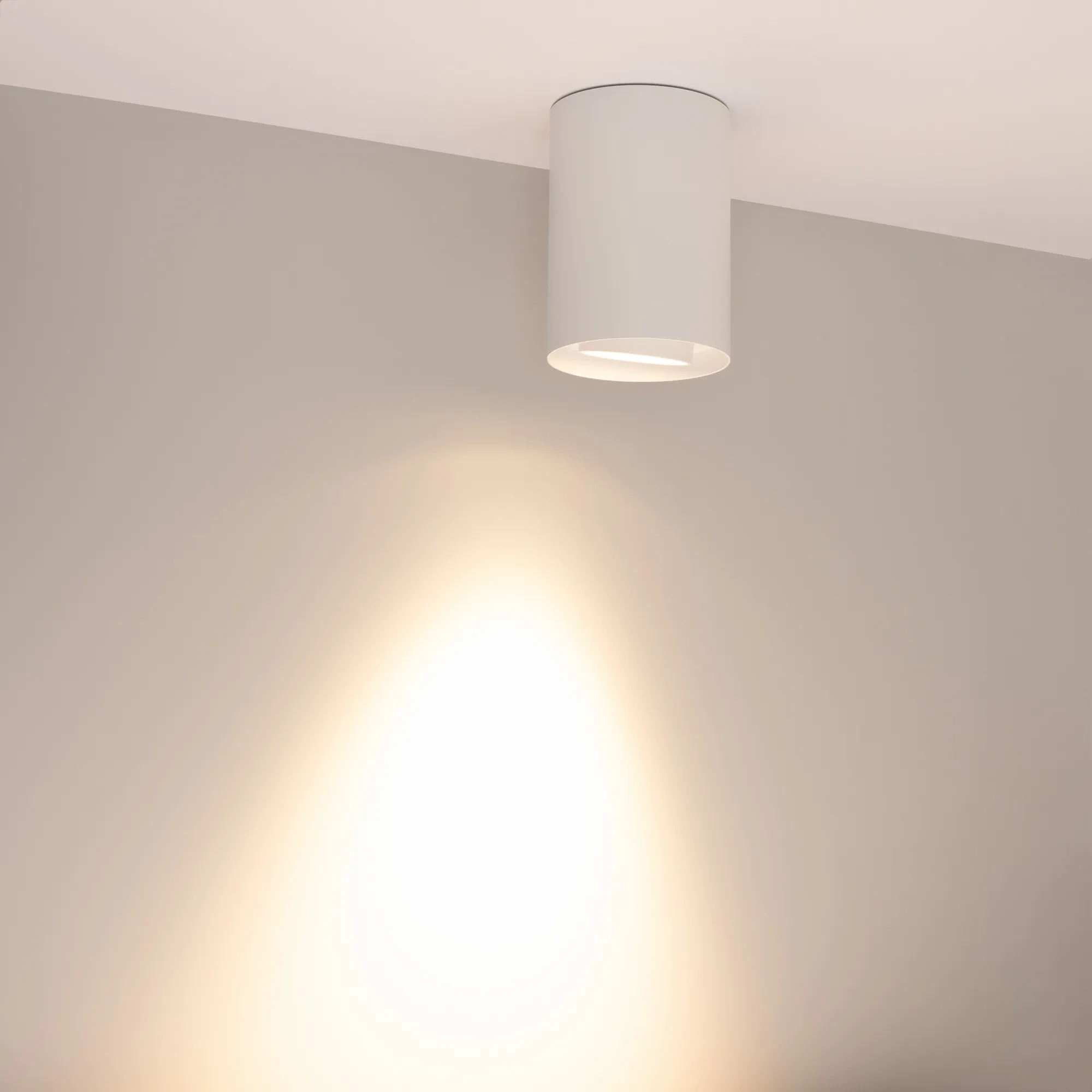 Накладной интерьерный светильник. Мощность 10 Вт, св. поток 970 лм, 93 лм/Вт, теплый 3000 K, CRI>90, угол 36°, регулируемое направление луча 40° (20+20), поворотный световой модуль вокруг своей оси на 340°, UGR <18, напряжение питания 230 В. Белый круглый корпус из алюминия, степень защиты IP54. Размер: диаметр 86,5 мм, высота 120 мм. Монтаж накладной. Драйвер 27-43 В, 250 мА, пульсация <1%.