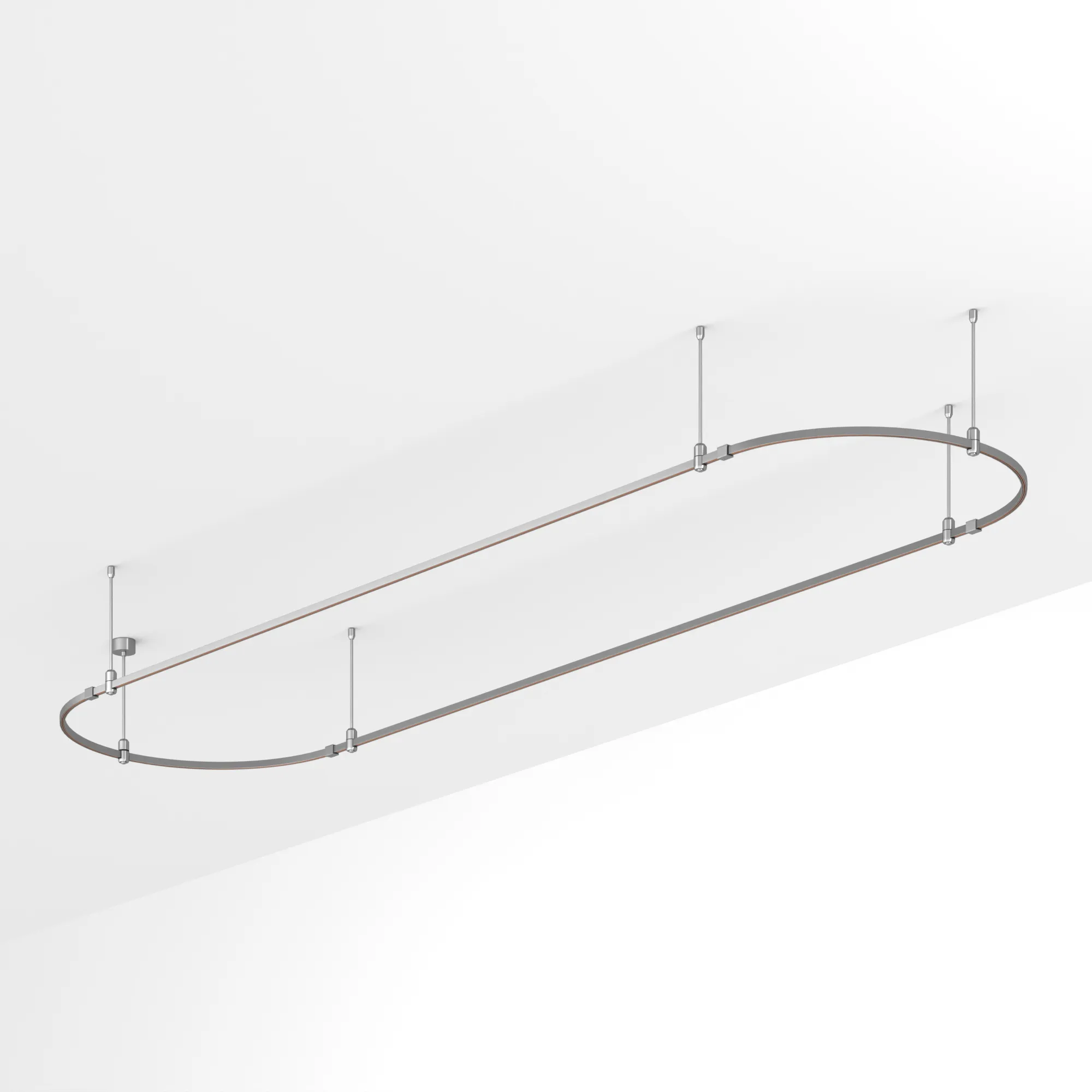 Подвесная конструкция APRIORI, форма овал. В комплекте треки с аксессуарами и жесткими подвесами длиной 400мм. DC48V. Материал алюминий, цвет титан. Размер ДxШxВ: 4000x1000x22мм. Светильники и источники питания приобретаются отдельно.