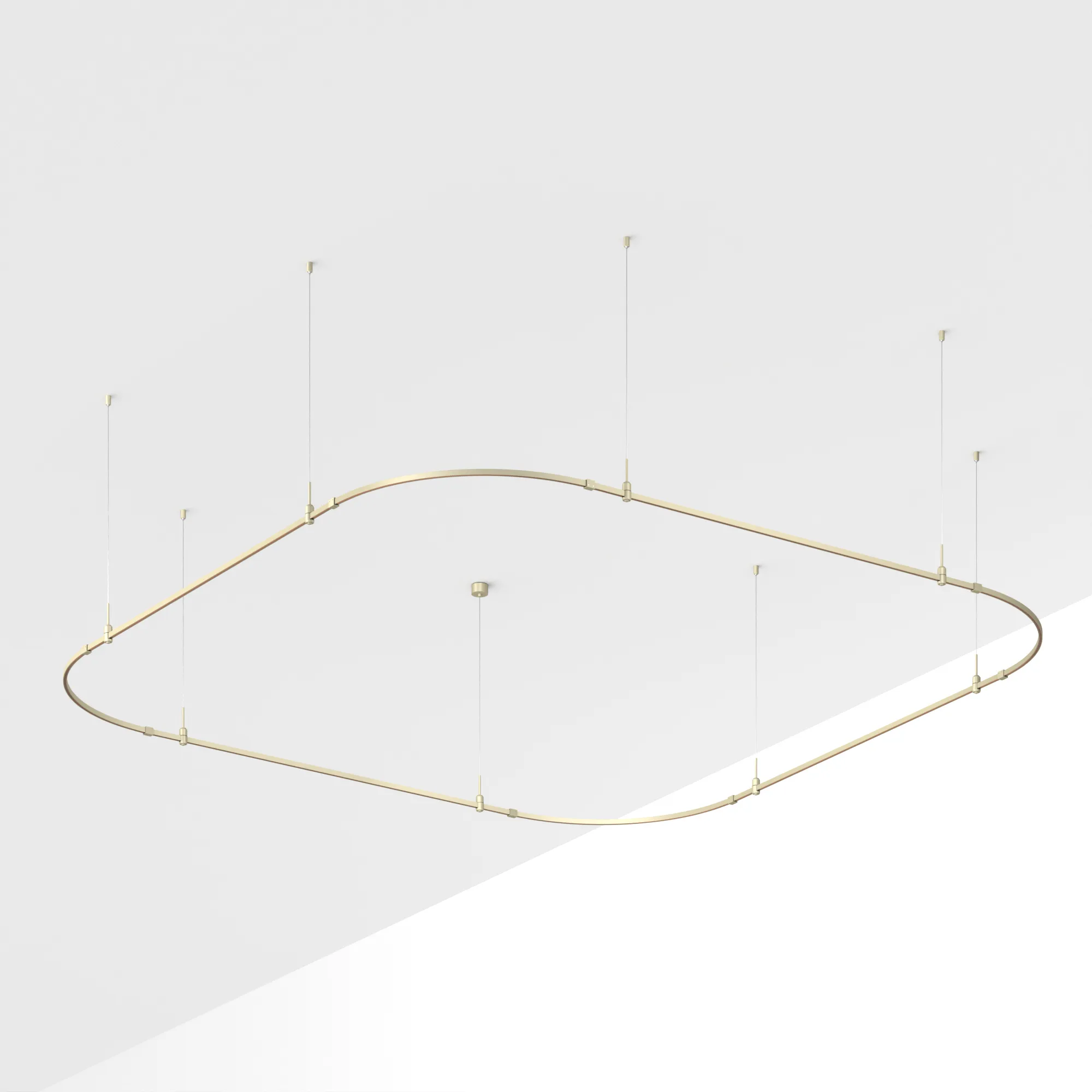 Подвесная конструкция APRIORI, форма закруглённый квадрат. В комплекте треки с аксессуарами и гибкими подвесами. DC48V. Материал алюминий, цвет серо-оливковый. Размер ДxШxВ: 3500x3500x22мм. Светильники и источники питания приобретаются отдельно.