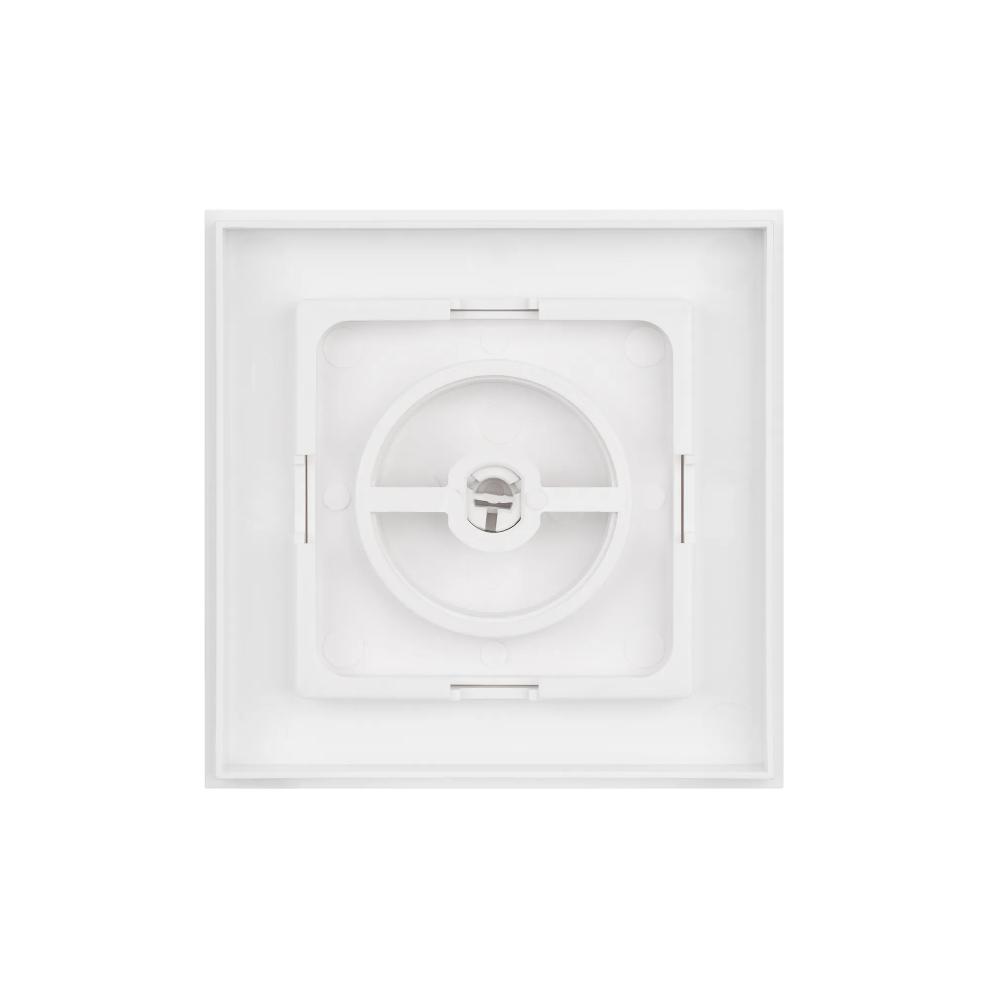 Накладка декоративная одинарная для панели TRIAC-601-33-PD-IN размер 84*84mm, цвет белый глянцевый. Внутренний сегмент накладки имеет габариты 55х55мм и подходит к рамкам любых изготовителей, имеющих соответствующий установочный размер.