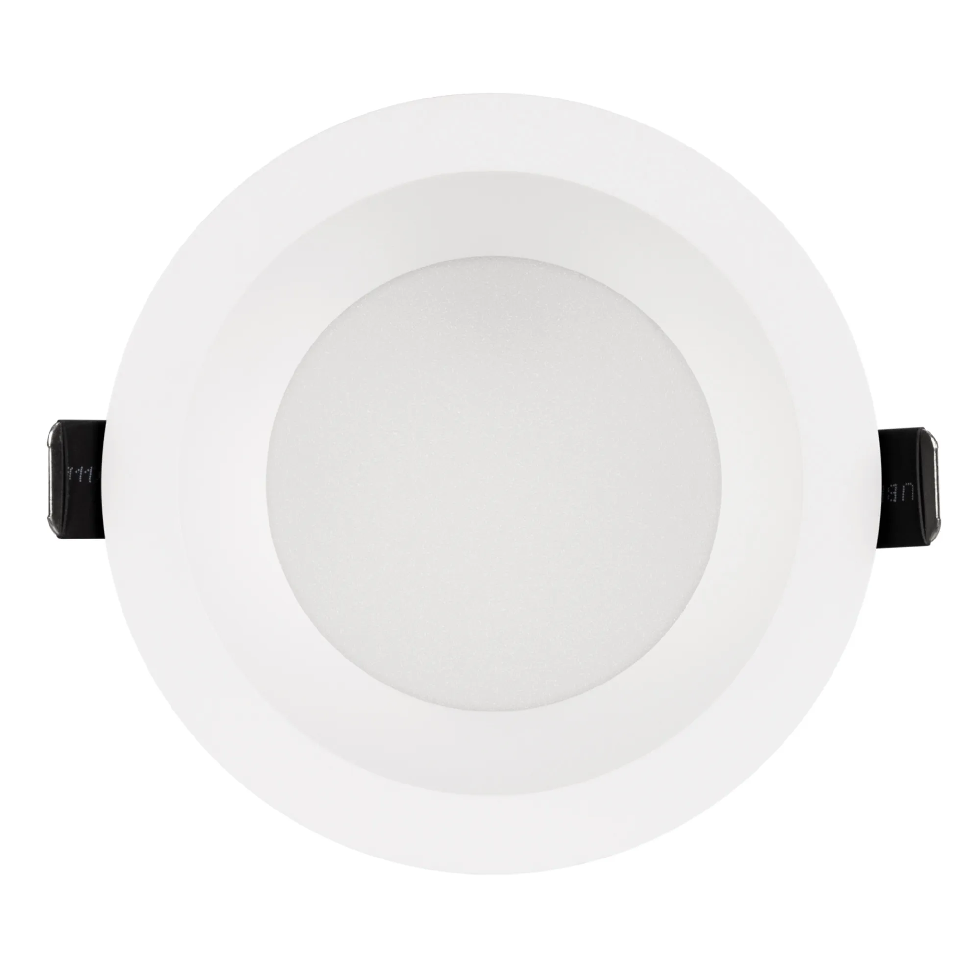 Встраиваемый светильник даунлайт. Мощность 14 Вт, св. поток 1170 лм, 83 лм/Вт, тёплый 2700 K, CRI>90, угол 85°, напряжение питания 230 В. Белый круглый корпус из алюминия, степень защиты IP54. Размер: диаметр 105 мм, высота 58 мм. Монтаж встраиваемый, установочное отверстие: диаметр 95 мм. Драйвер 26-42 В, 350 мА, пульсация <2%.