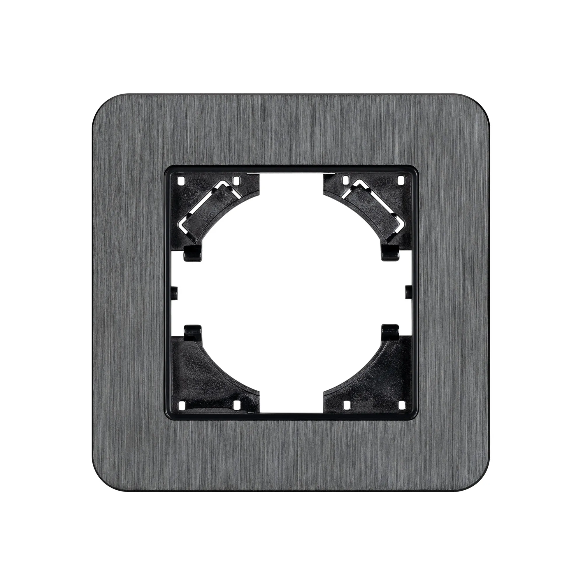 Рамка алюминиевая на 1 пост, под встраиваемый механизм. Цвет - черный. Уровень герметичности IP20. Ориентация монтажа - горизонтальная (основным ориентиром служат посадочные выступы для накладки механизма).
