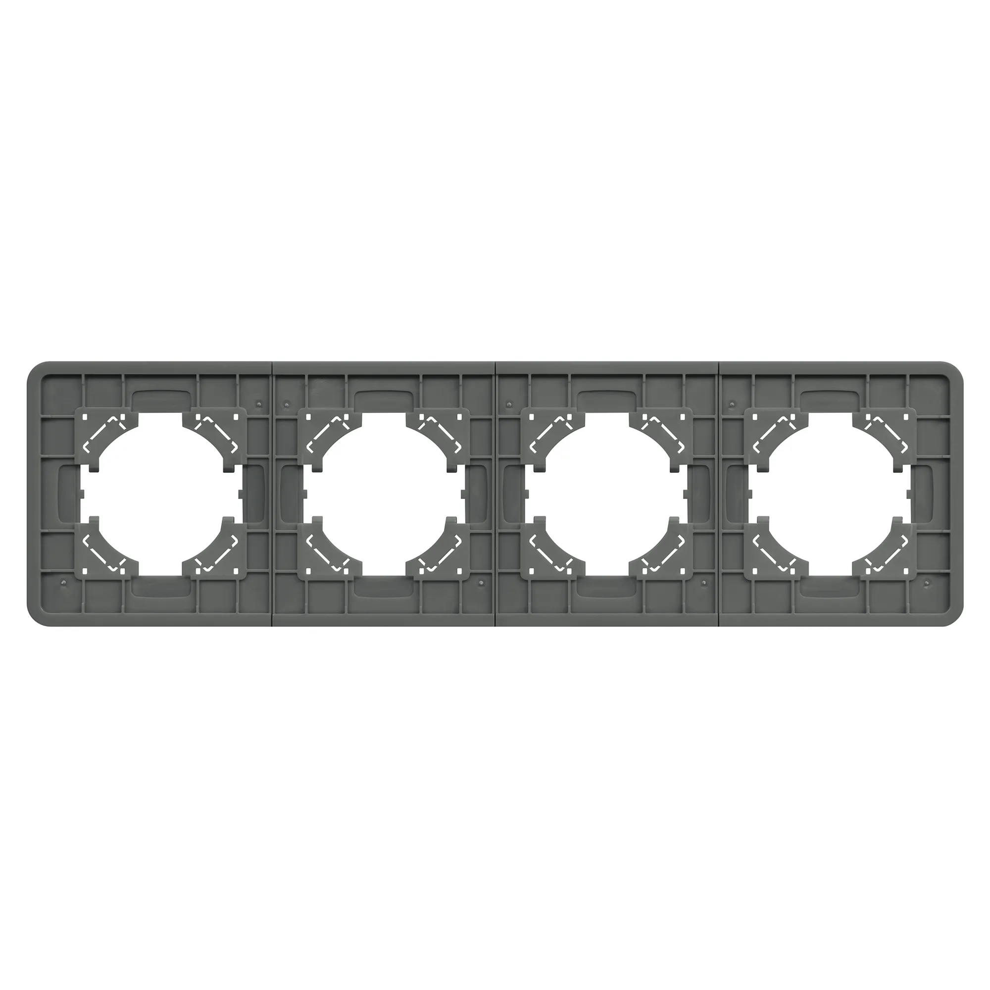 Рамка стеклянная на 4 поста, под встраиваемый механизм. Цвет - серый с Soft-Touch покрытием. Уровень герметичности IP20. Ориентация монтажа - горизонтальная (основным ориентиром служат посадочные выступы для накладки механизма).