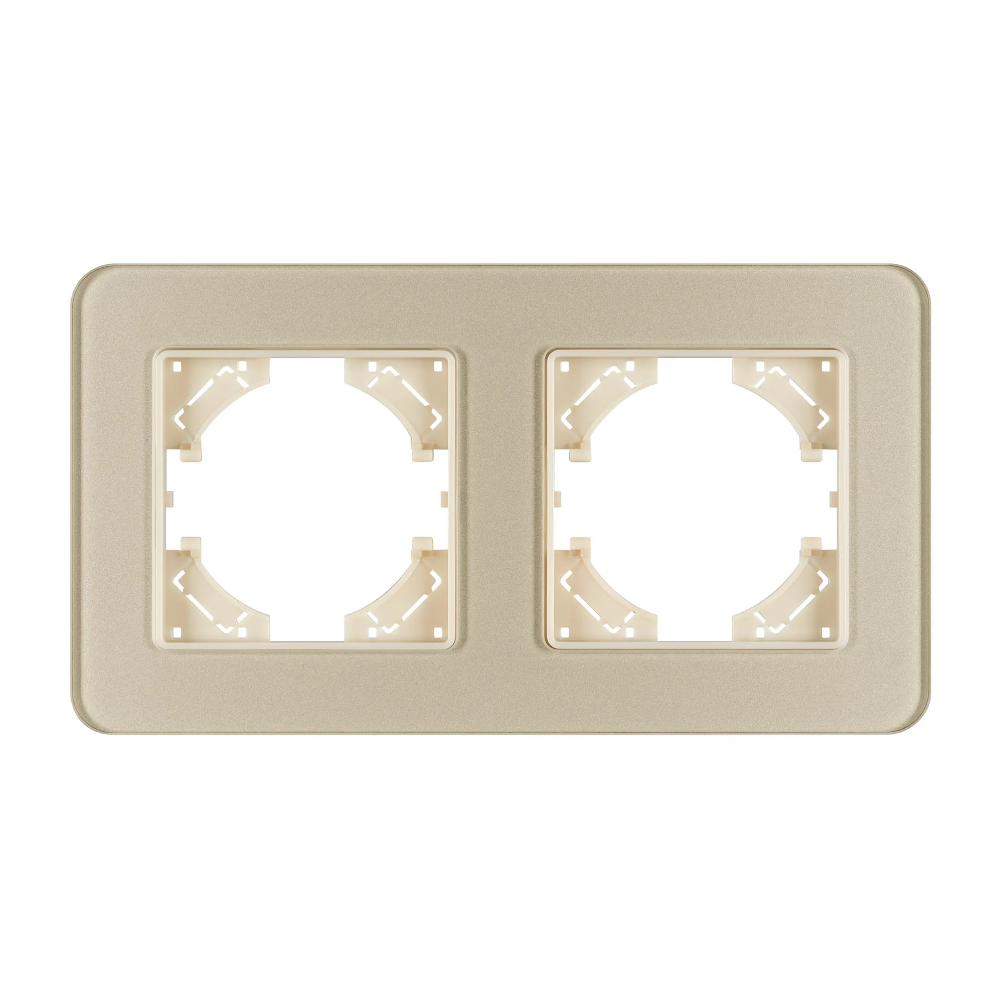 Рамка стеклянная на 2 поста, под встраиваемый механизм. Цвет - золотой. Уровень герметичности IP20. Ориентация монтажа - горизонтальная (основным ориентиром служат посадочные выступы для накладки механизма).