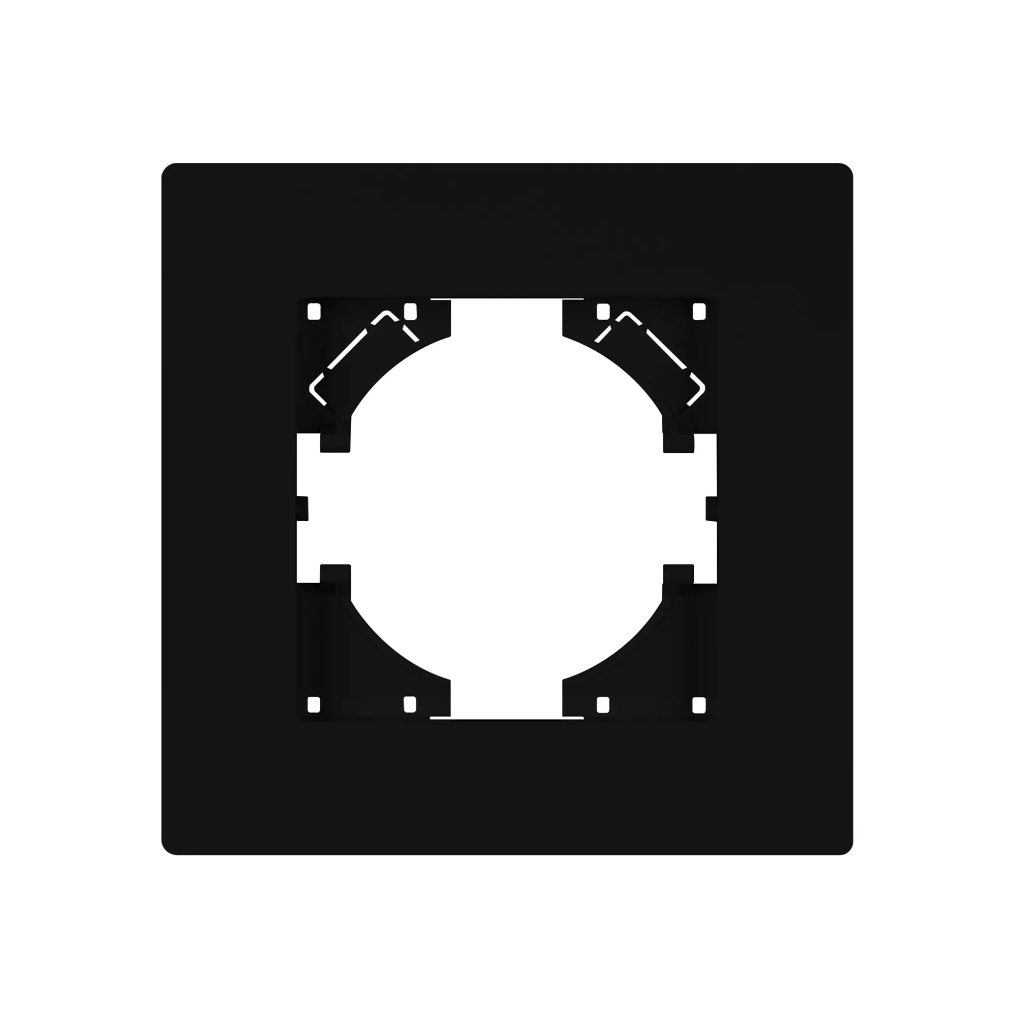 Рамка пластиковая на 1 пост, под встраиваемый механизм. Цвет - черный. Уровень герметичности IP20. Ориентация монтажа - горизонтальная (основным ориентиром служат посадочные выступы для накладки механизма).
