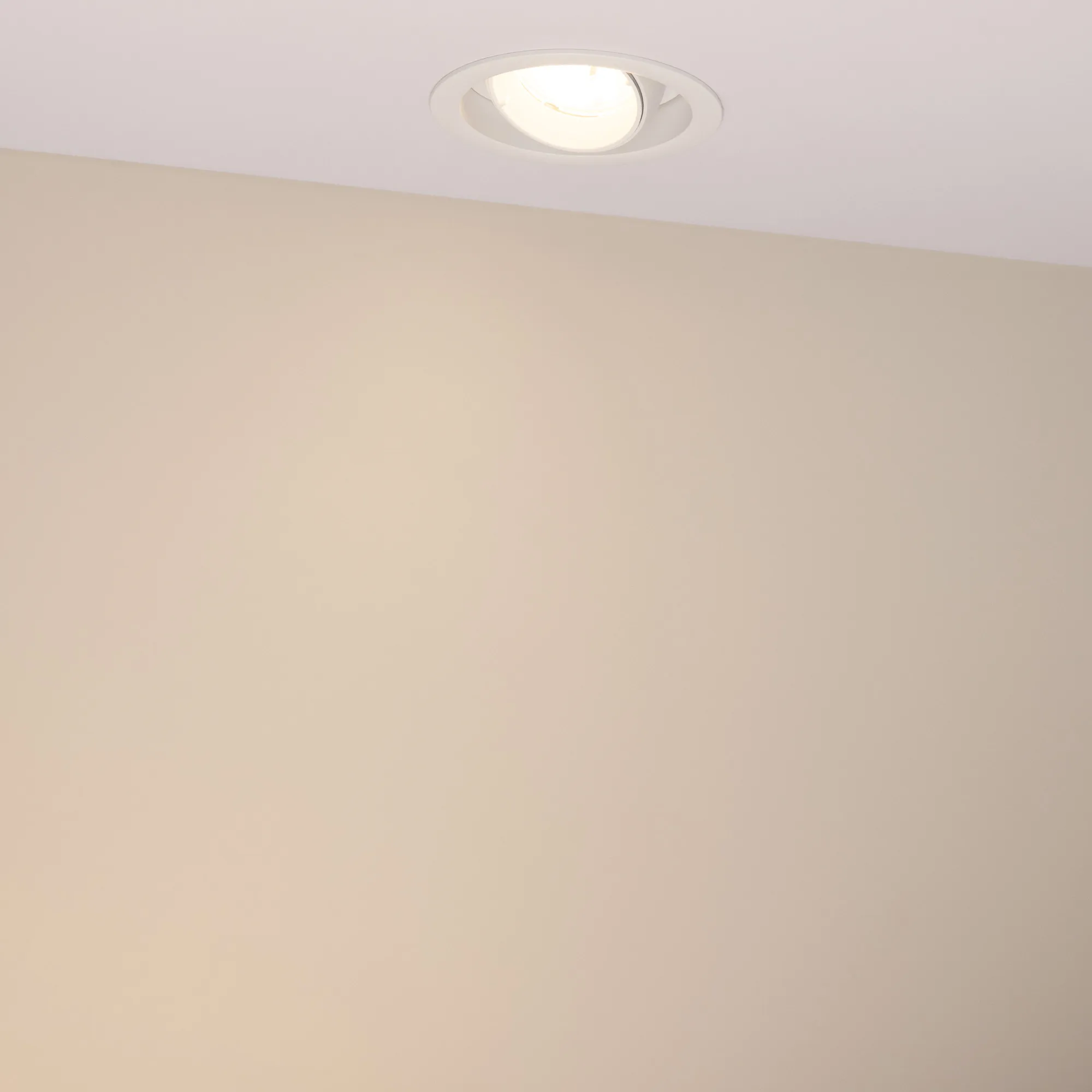 Встраиваемый карданный светильник. Мощность 20 Вт, св. поток 2132 лм, 107 лм/Вт, тёплый 3000 K, CRI>92, угол 40°, напряжение питания 230 В. Белый корпус из алюминия, белая вставка, степень защиты IP20. Размер: диаметр 110 мм, высота 105 мм. Монтаж встраиваемый, установочное отверстие: диаметр 95 мм. Драйвер 24-42 В, 500 мА, пульсация <2%.